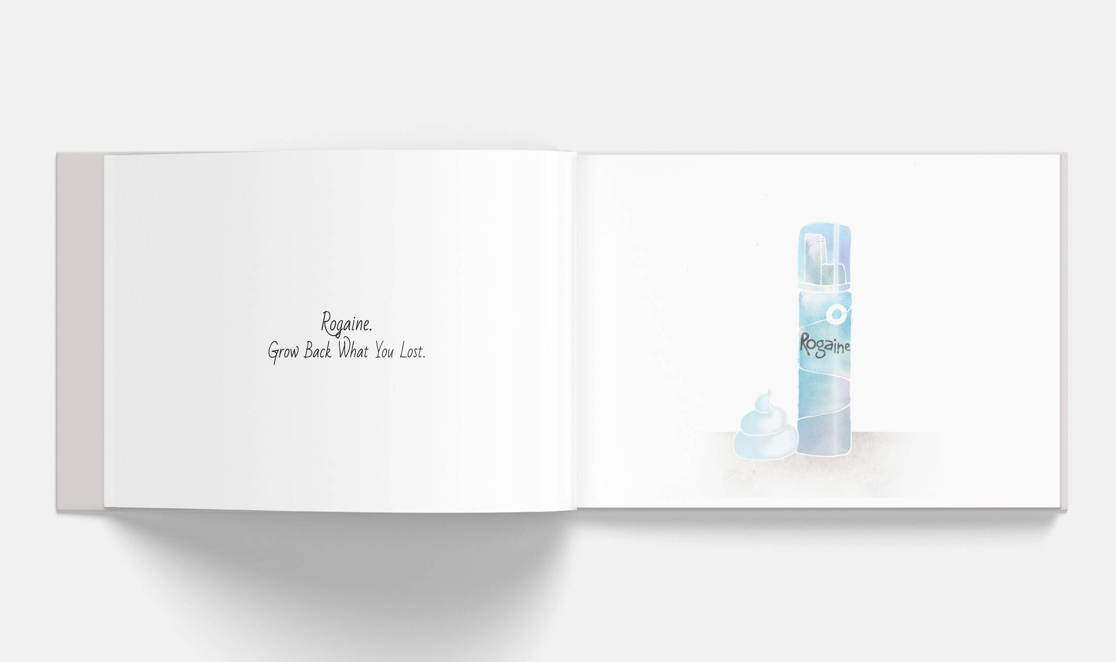 For men, the first stage of hair loss is denial. In order to coax men out of their denial, Rogaine has created an adult children's book.
