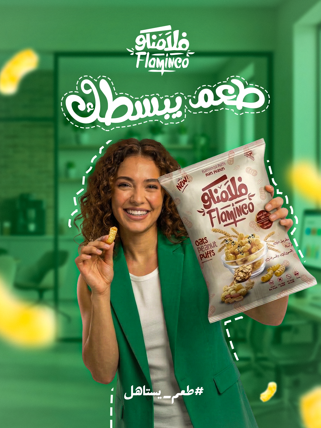 The bold green environment reflects freshness and consistency, while the colorful packs represent variety and different tastes for every mood.