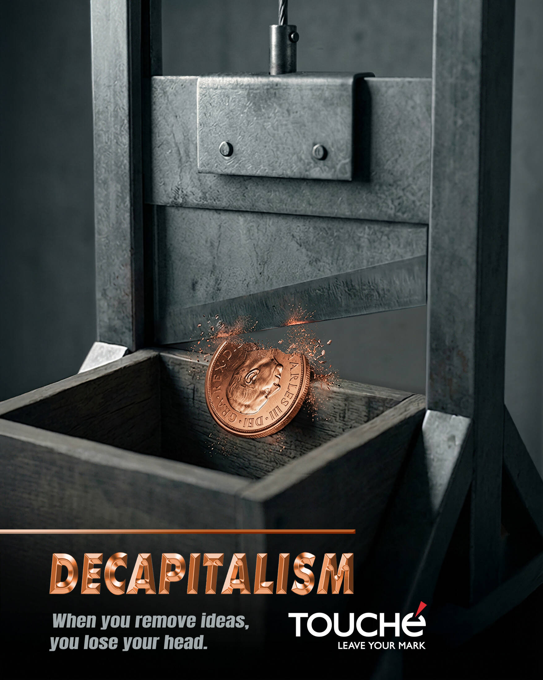 This professional campaign titled 'Guillotine' was published in Italy in January, 2026. It was created for the brand: Touché, by ad agency: Touché. This Print medium campaign is related to the Agency Self-Promo industry and contains 1 media asset. It was submitted 7 minutes ago by Creative Director: Luca of Touché.
