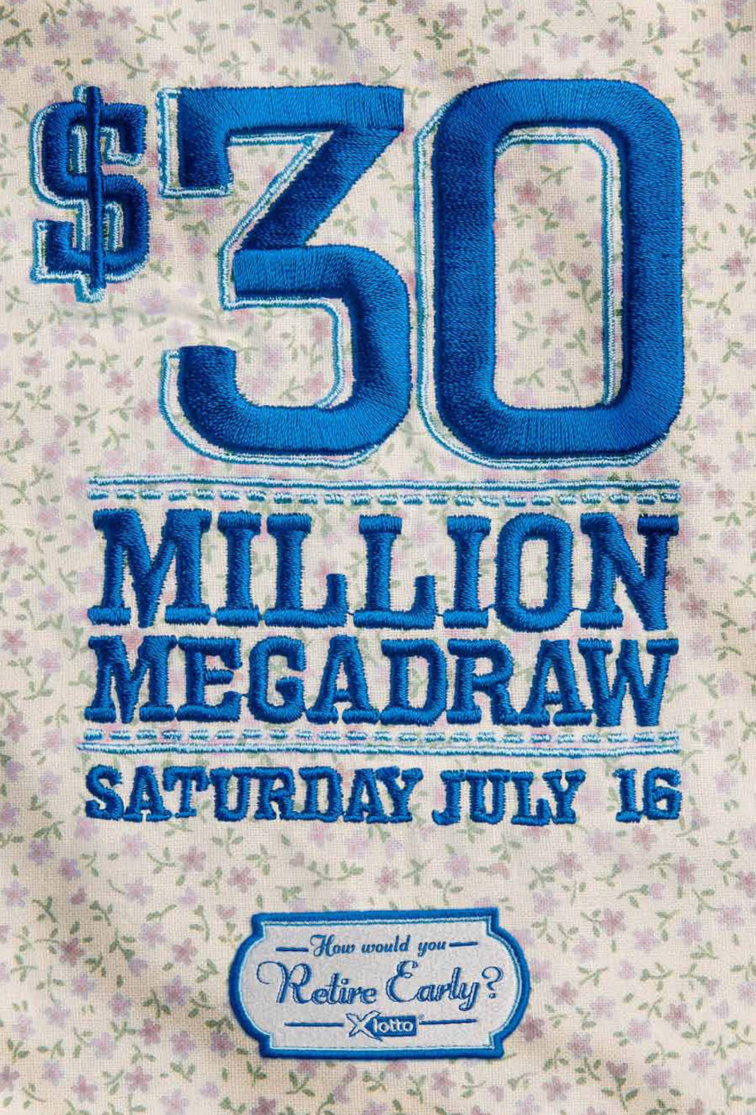 This professional campaign titled 'Guy, Girl, Embroidery, Retire Early' was published in Australia in July, 2011. It was created for the brand: X Lotto, by ad agency: BBDO. This Print medium campaign is related to the Gaming industry and contains 4 media assets. It was submitted over 14 years ago.