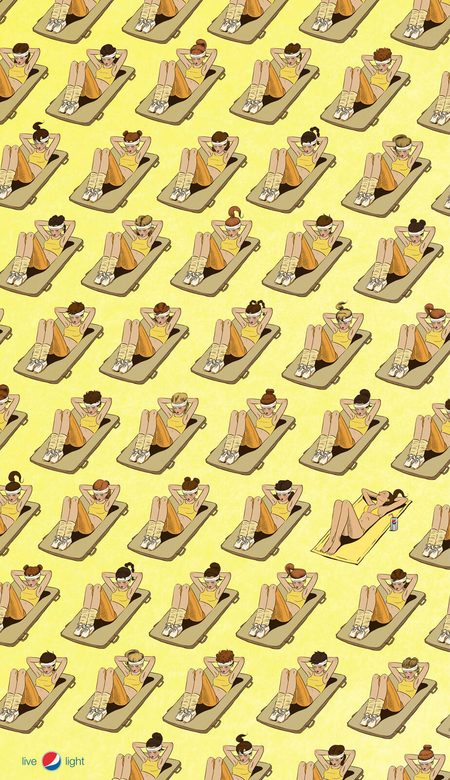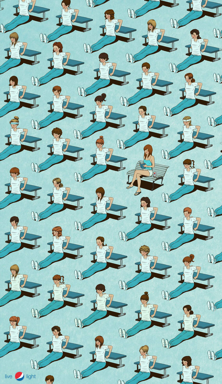 This professional campaign titled 'Gym Exercises' was published in Chile in September, 2011. It was created for the brand: Pepsi, by ad agency: BBDO. This Print medium campaign is related to the Drinks (Non Alcoholic) industry and contains 3 media assets. It was submitted over 14 years ago.