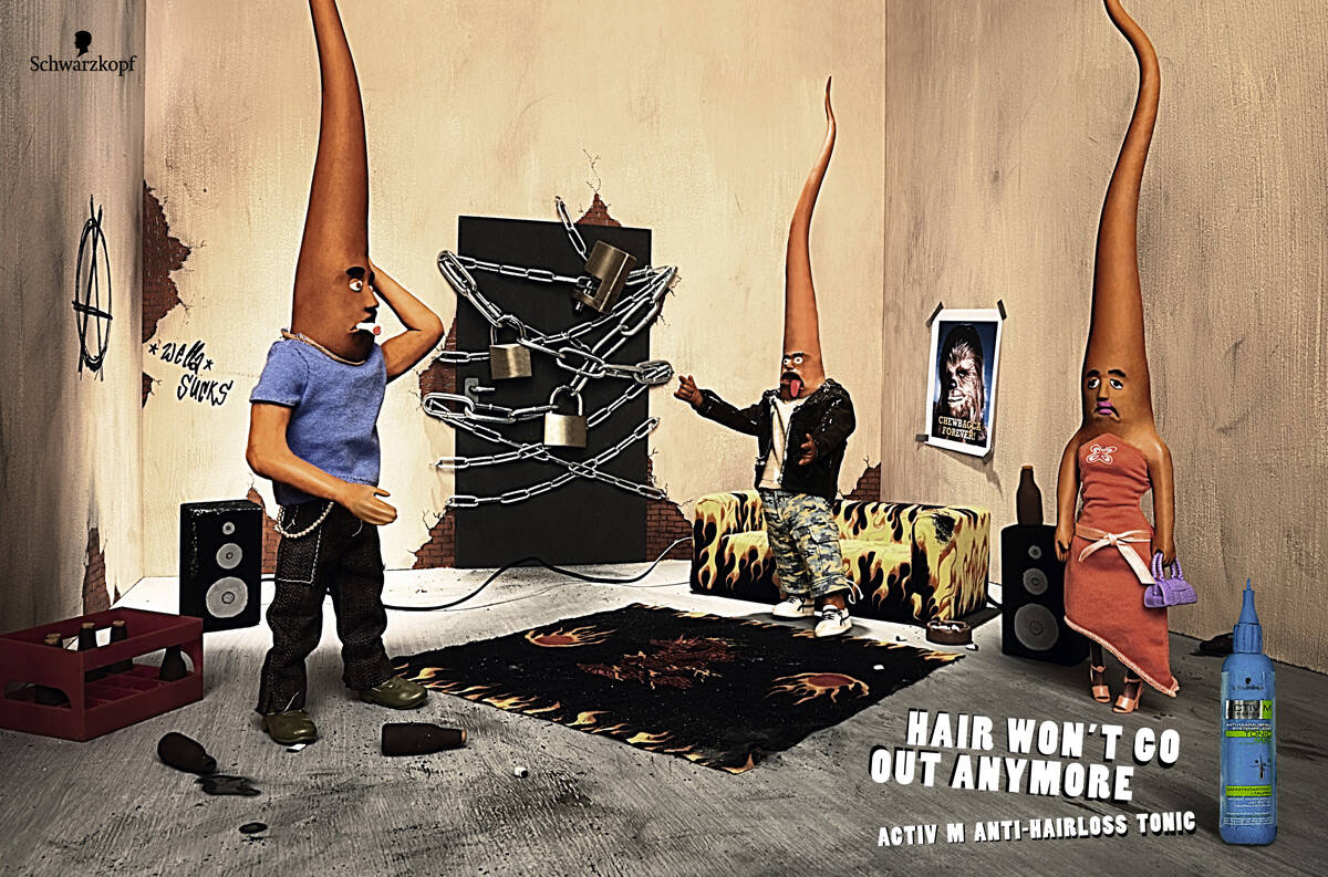 This professional campaign titled 'Hair Arrest - Wall, Fan, Chain' was published in Germany in March, 2007. It was created for the brand: Schwarzkopf, by ad agency: DDB. This Print medium campaign is related to the Health industry and contains 3 media assets. It was submitted almost 18 years ago.