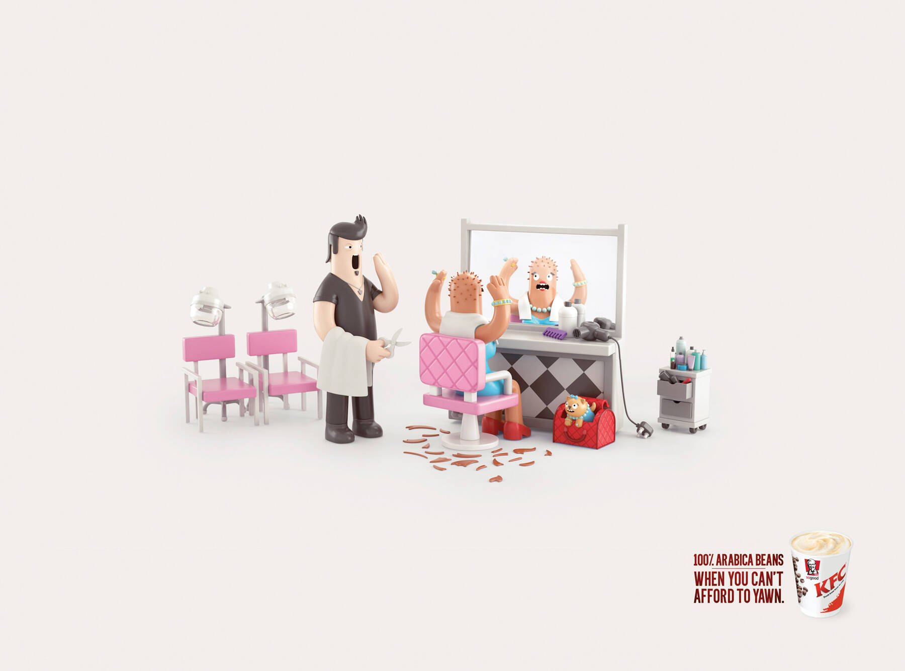 This professional campaign titled 'Hairdresser, All-nighter, Bumper basher, Cello' was published in South Africa in January, 2013. It was created for the brand: KFC, by ad agency: Ogilvy. This Print medium campaign is related to the Drinks (Non Alcoholic) industry and contains 4 media assets. It was submitted almost 13 years ago.