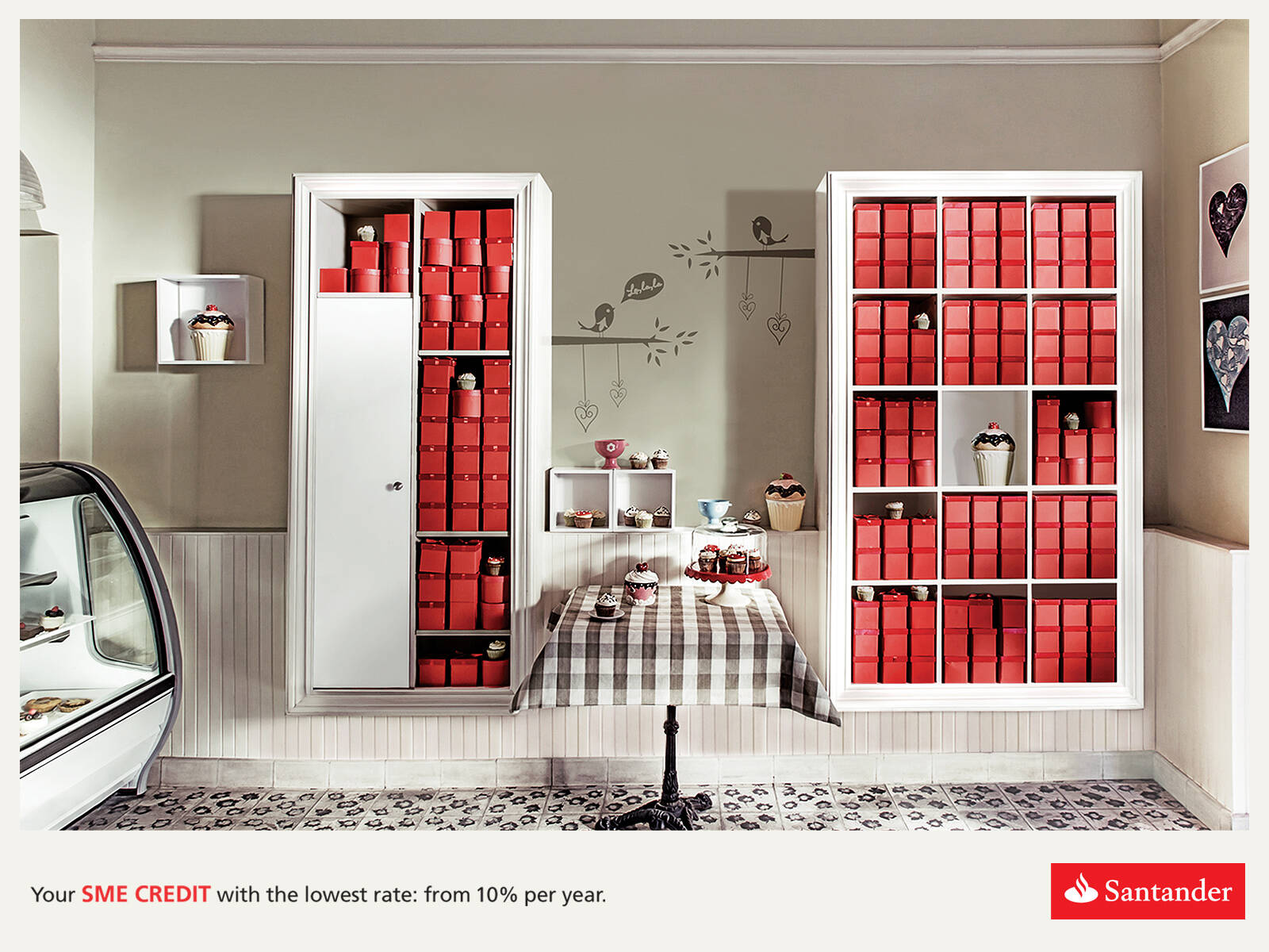 This professional campaign titled 'Hairdressing, Cupcake Store, Clothes Shop' was published in Mexico in May, 2012. It was created for the brand: Santander Bank, by ad agency: Todo lo contrario. This Print medium campaign is related to the Finance industry and contains 3 media assets. It was submitted over 13 years ago.