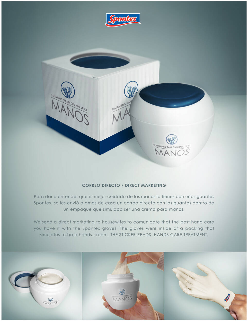 This professional campaign titled 'Hand care' was published in Mexico in December, 2008. It was created for the brand: Spontex, by ad agency: Reskala. This Static Images medium campaign is related to the House, Garden industry and contains 1 media asset. It was submitted almost 17 years ago.