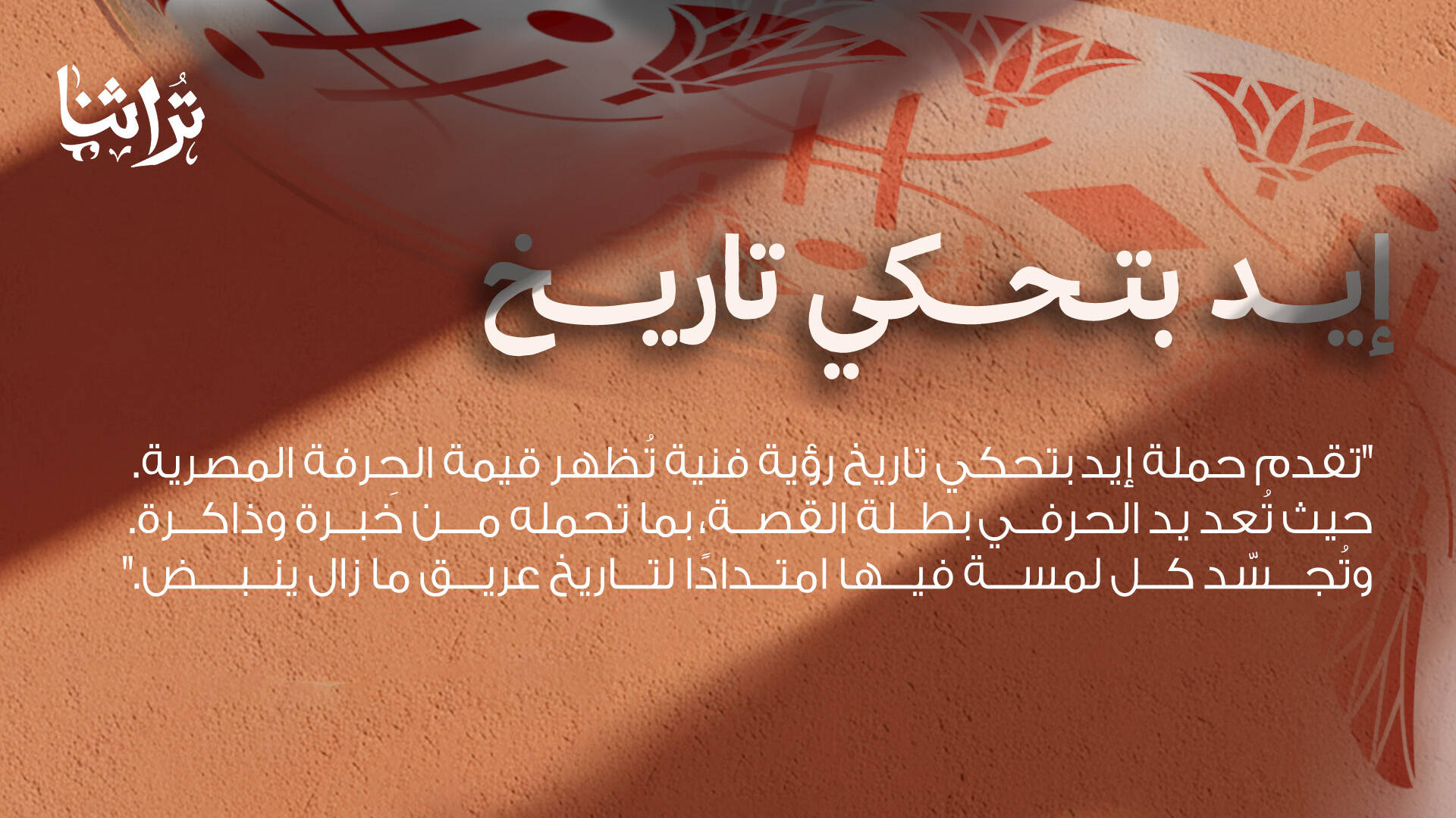 This student campaign titled 'أيد بتحكي تاريخ - hands tells a story ' was published in Egypt in December, 2025. It was created for the brand: Turathna, by ad school: The Higher Institute Of Applied Arts. This Content and Design media campaign is related to the Media, Other, and Public Interest industries and contains 4 media assets. It was submitted about 1 hour ago by graphic designer: suhyla amr.