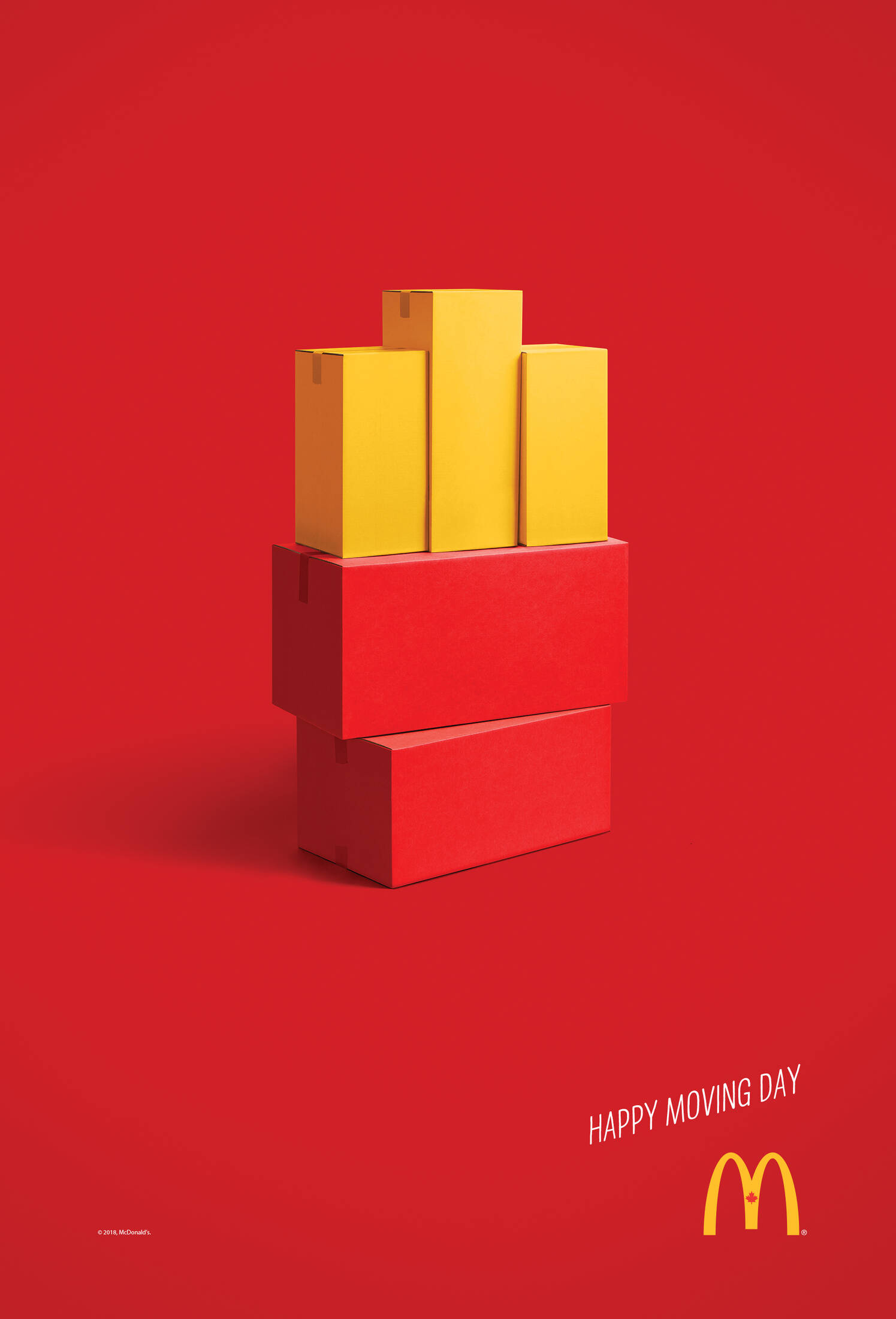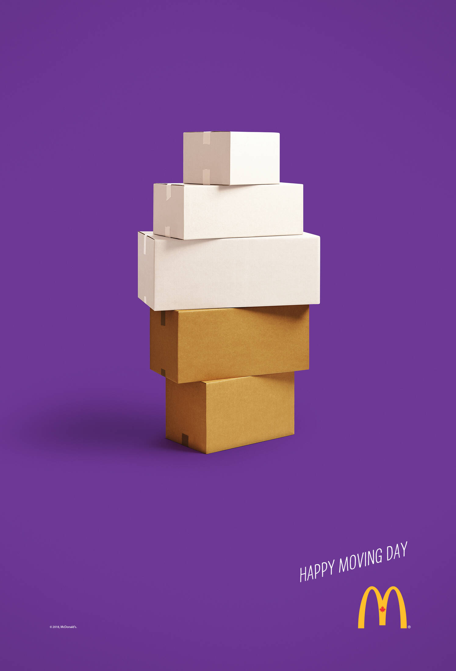 We decided to use colored boxes to represent popular menu items. At the same time, we reminded Quebecers that McDonald’s and moving are a perfect match.