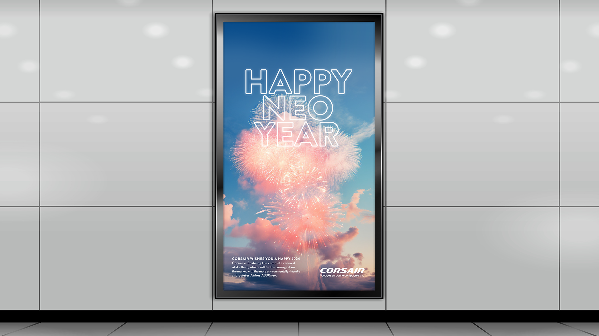 CORSAIR WISHES YOU A HAPPY 2024! Corsair is finalizing the complete renewal of its fleet, which will be the youngest on the market with the more environmentally-friendly and quieter Airbus A330neo.