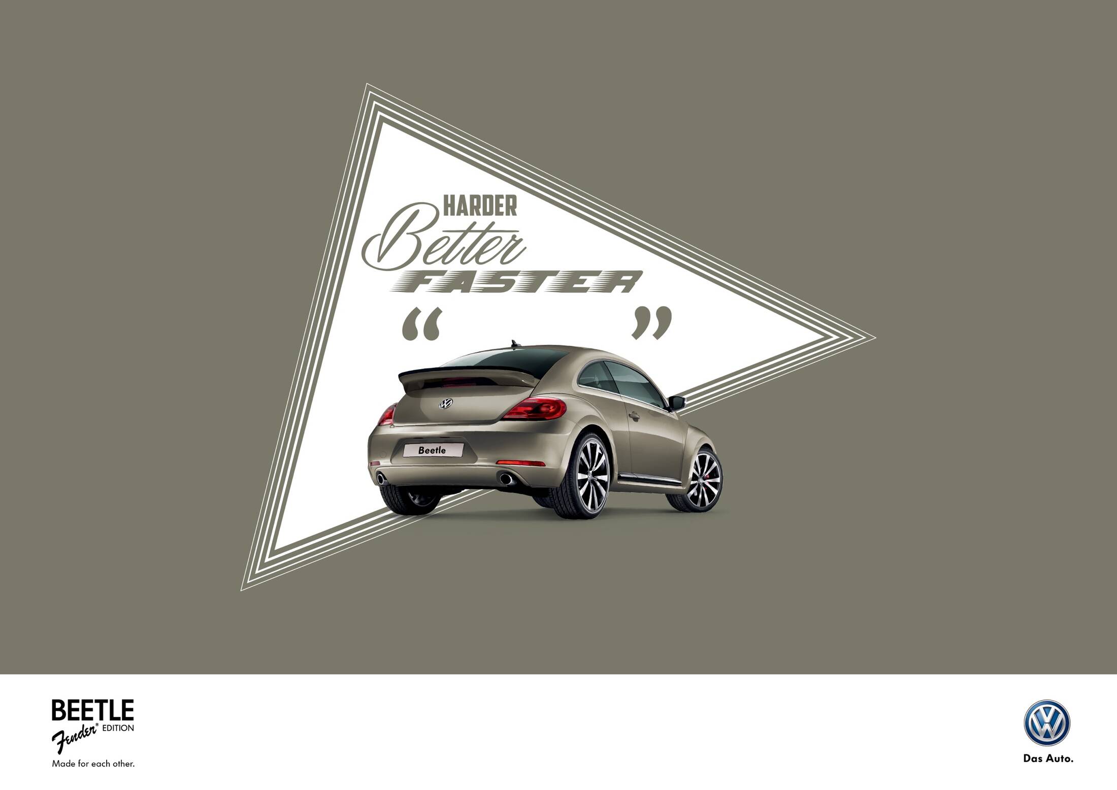The brief was to create a campaign that celebrated the coming together of two iconic brands, the Volkswagen Beetle and Fender sound system that’s installed in the new Beetle. Both brands have a rich heritage and we needed to find a way to unite them in a fresh, interesting way.