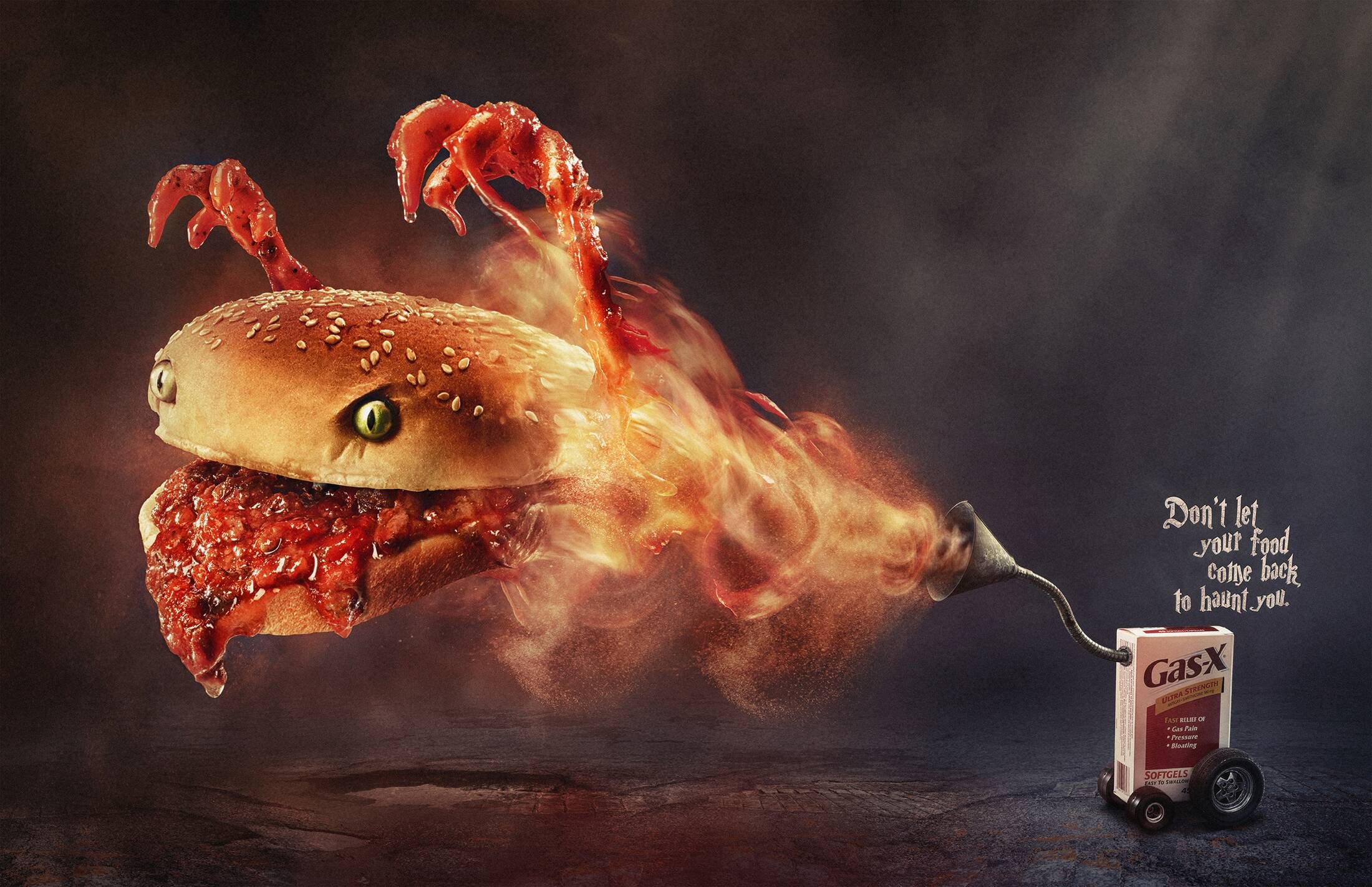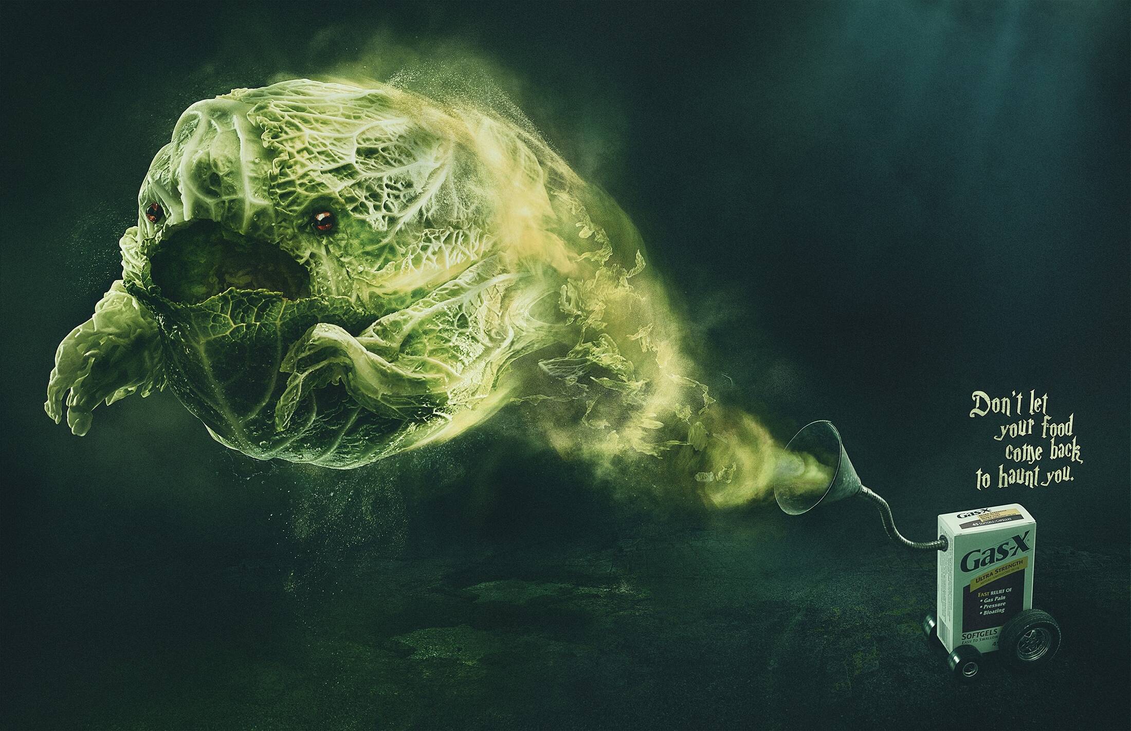 This professional campaign titled 'Haunted Sloppy Joe, Haunted cabbage' was published in Canada in March, 2016. It was created for the brand: Gas-X, by ad agency: Saatchi & Saatchi. This Print medium campaign is related to the Pharmaceutical industry and contains 2 media assets. It was submitted over 9 years ago.