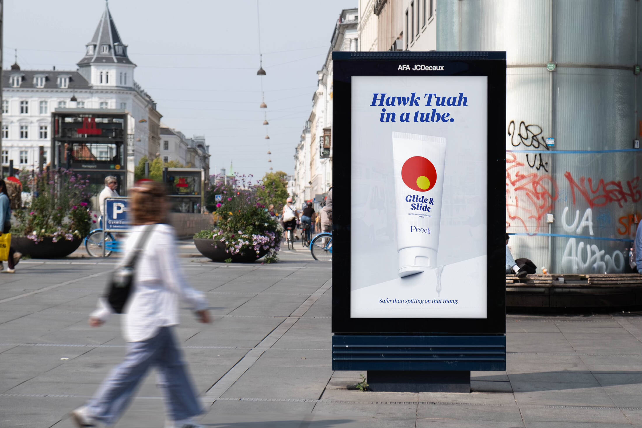 This professional campaign titled 'Hawk Tuah in a tube' was published in Denmark in August, 2024. It was created for the brand: Peech, by ad agency: Worth Your While. This OOH Outdoor medium campaign is related to the Health industry and contains 1 media asset. It was submitted over 1 year ago.