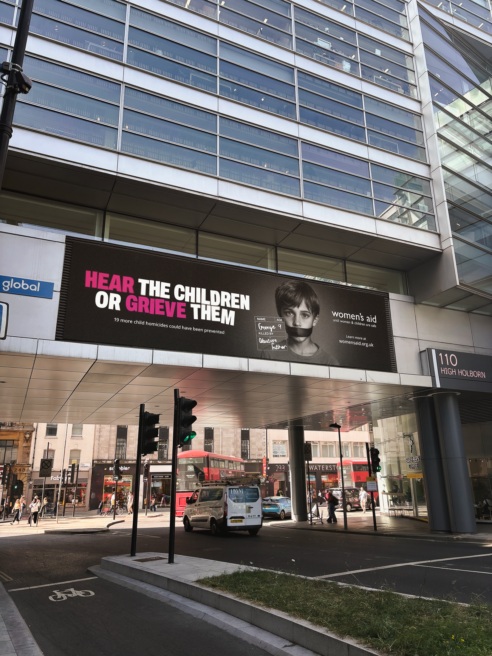 The release of the report on the 23rd June is supported by an impactful out-of-home (OOH) campaign positioned near the Central Family Court in central London. The campaign, titled “Hear the Children, or Grieve Them,” uses striking imagery and emotionally resonant copy to represent just some of the children whose voices were ignored. The campaign will run for one day on the Holborn Eye’s large format, high-definition digital screen and across the wider Holborn area, all within half a mile of the Central Family Court.