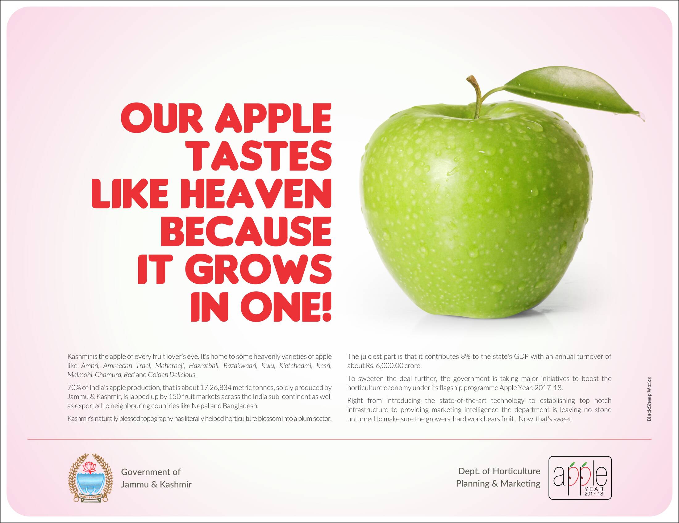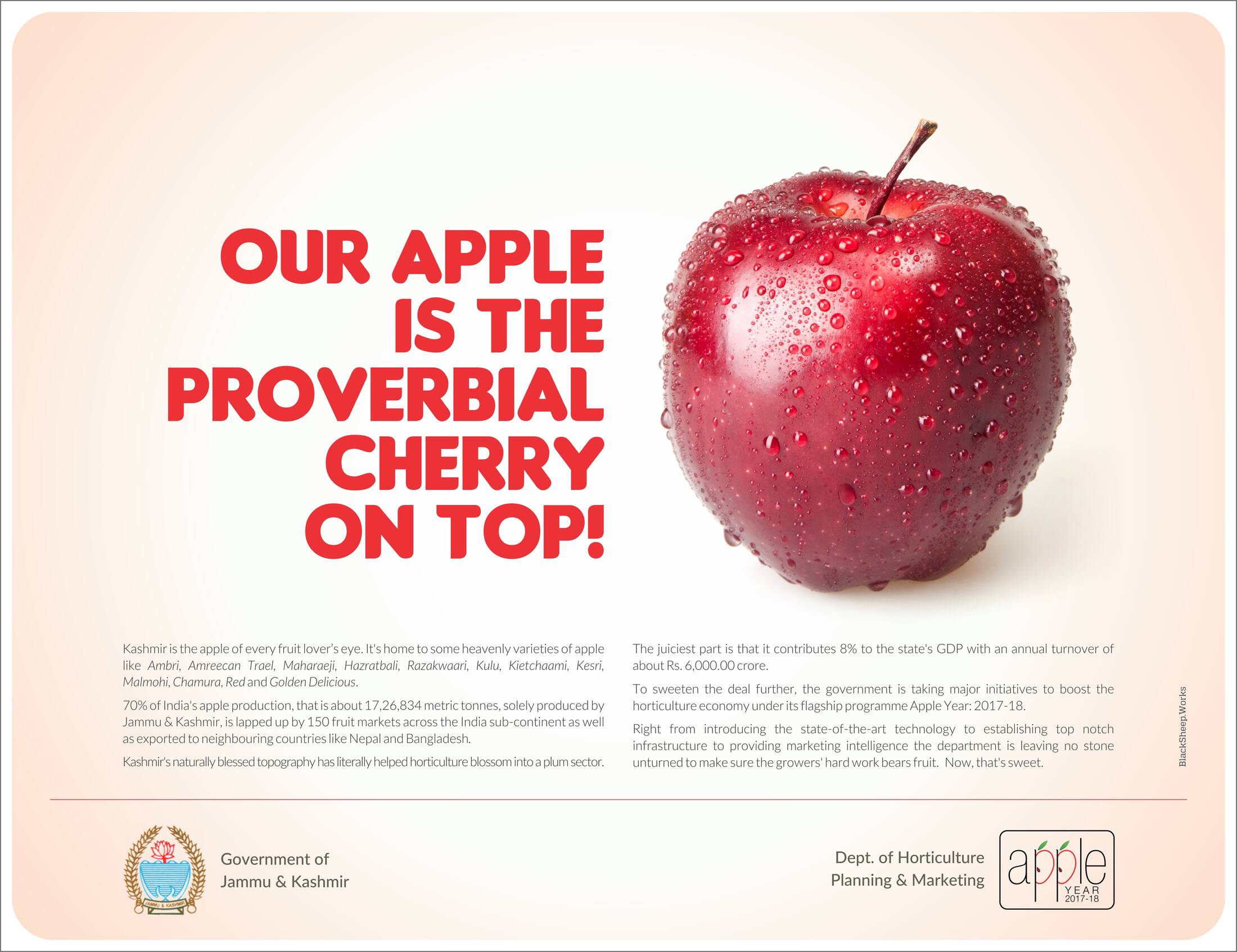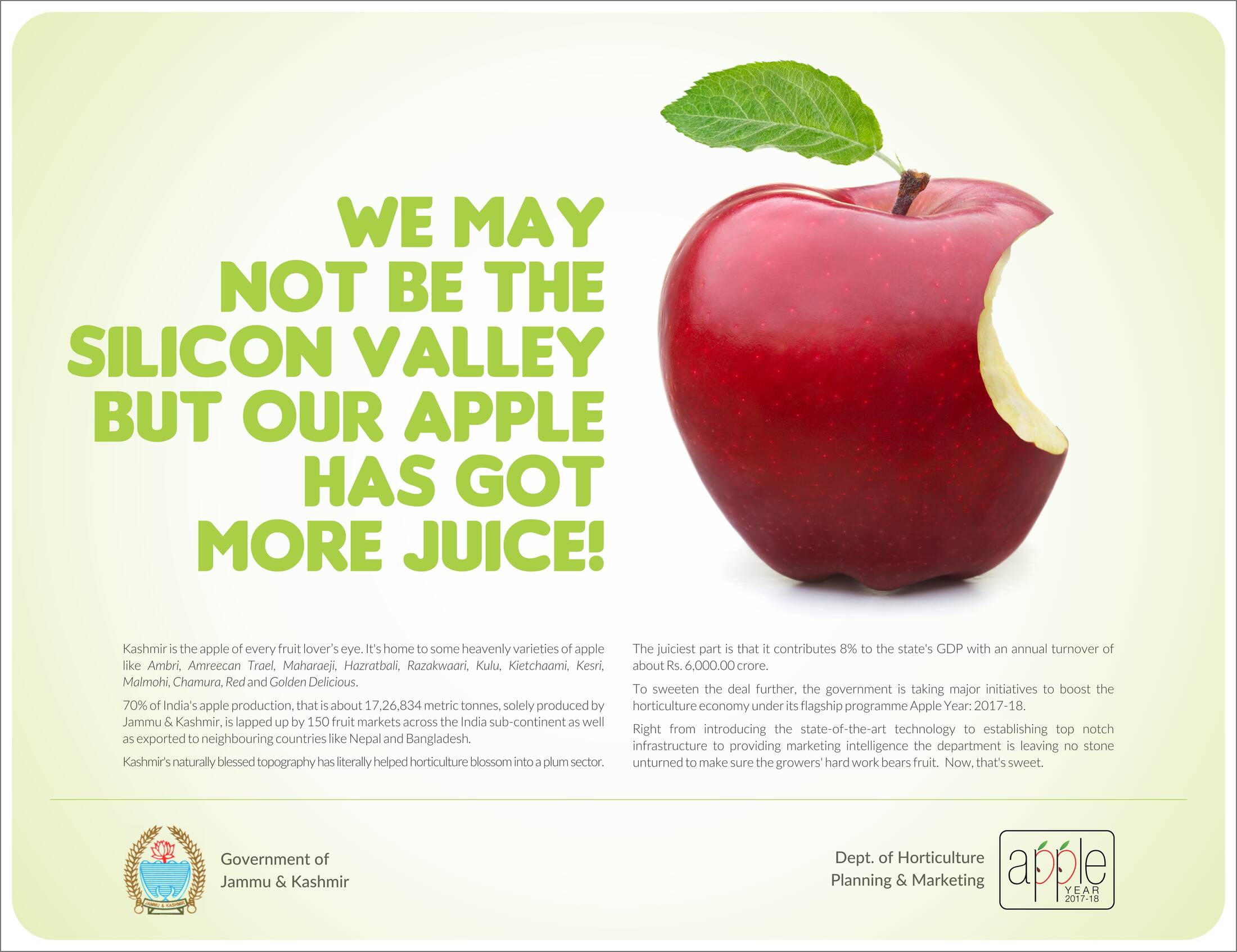 Government of Jammu & Kashmir’s Directorate of Horticulture Planning & Marketing commissioned Kashmir’s exclusive strategic and creative advertising agency, BlackSheep.Works to conceptualise a plum creative campaign for promoting Kashmiri apple under its flagship programme Apple Year: 2017-18 Campaign. This campaign is the fruit of agency’s labour.