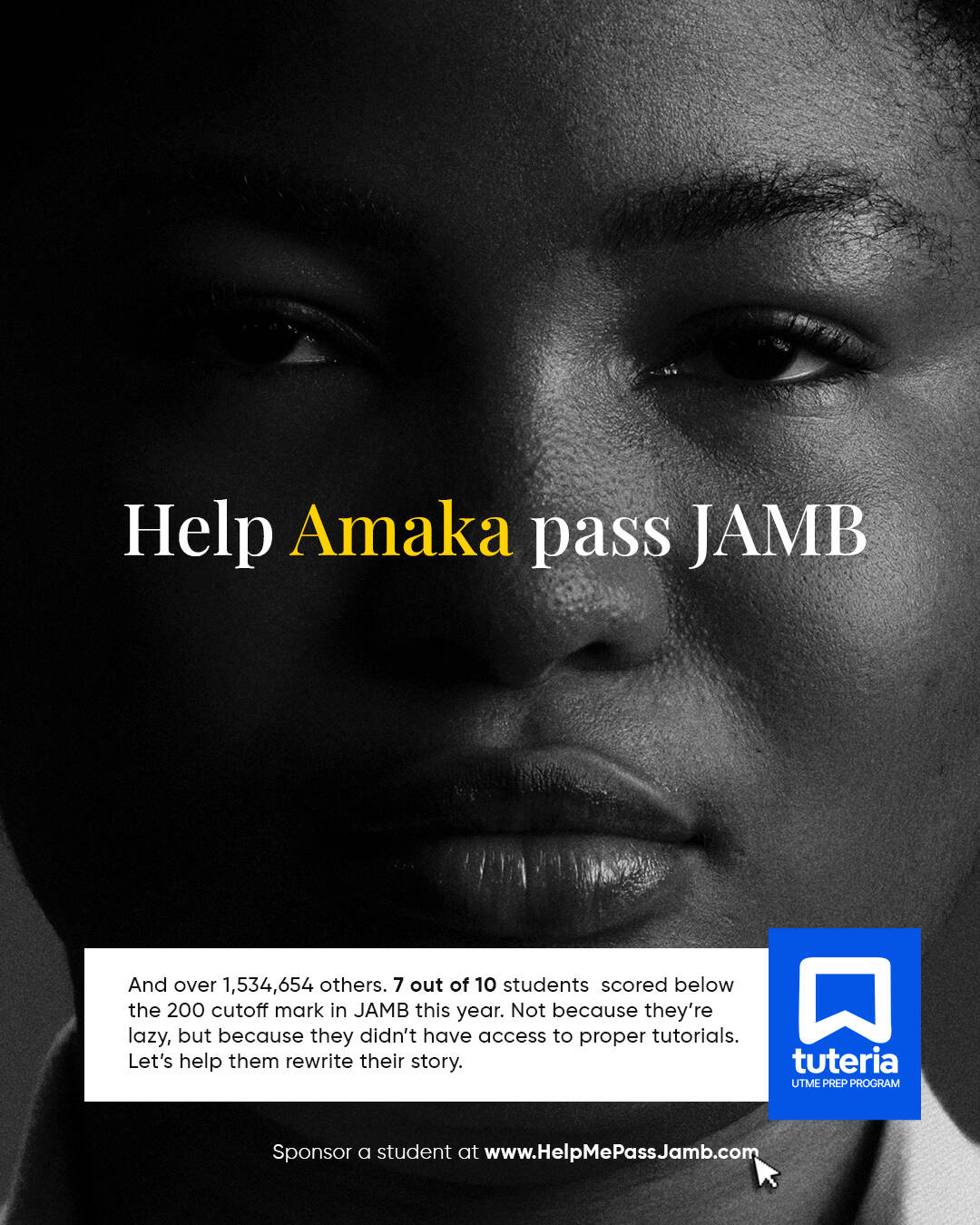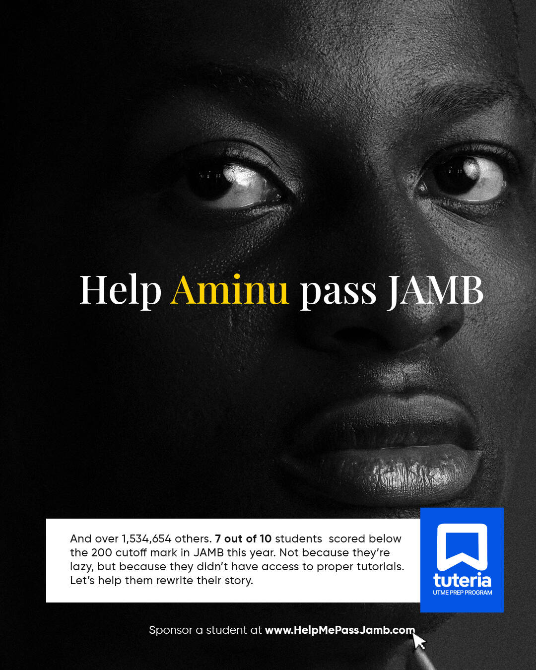HelpMePassJamb.com is a URL donation-led campaign that raised advocacy for Nigerians to donate to help the leaders of tomorrow pass JAMB. Simultaneously, we ran an awareness and 360 campaign to position Tuteria as a brand.