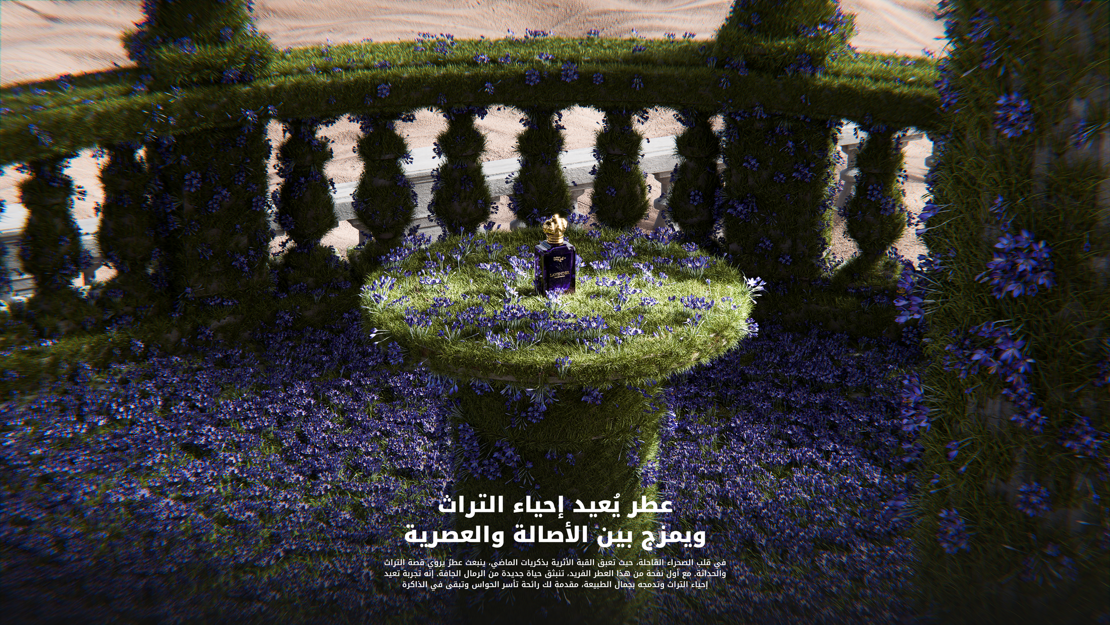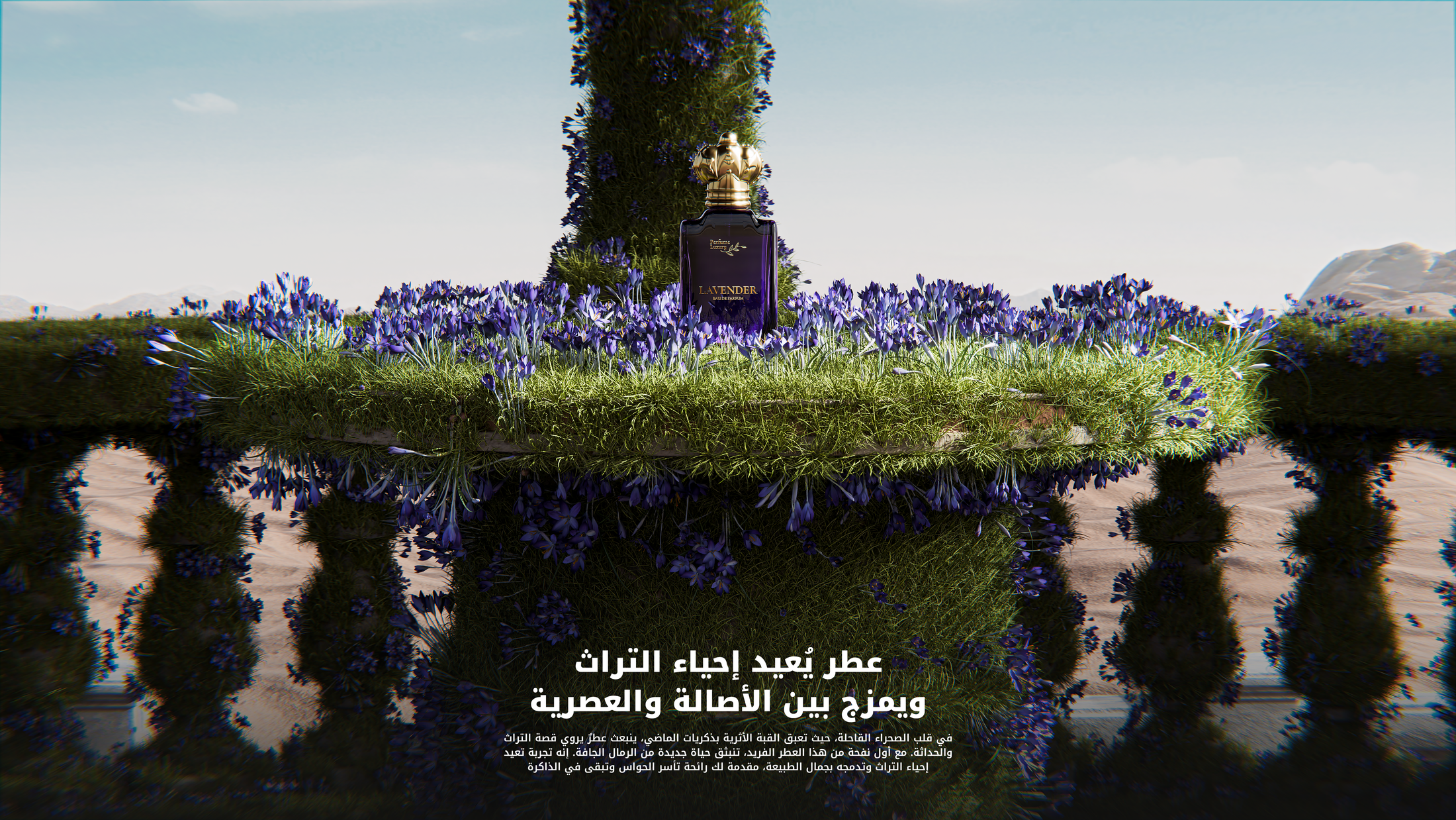 In the heart of the barren desert, where the ancient dome breathes the essence of the past, a fragrance emerges, telling the story of heritage and modernity. With the first whiff of this unique scent, new life springs from the dry sands. It’s an experience that revives heritage and blends it with the beauty of nature, offering you a fragrance that captivates the senses and lingers in memory.