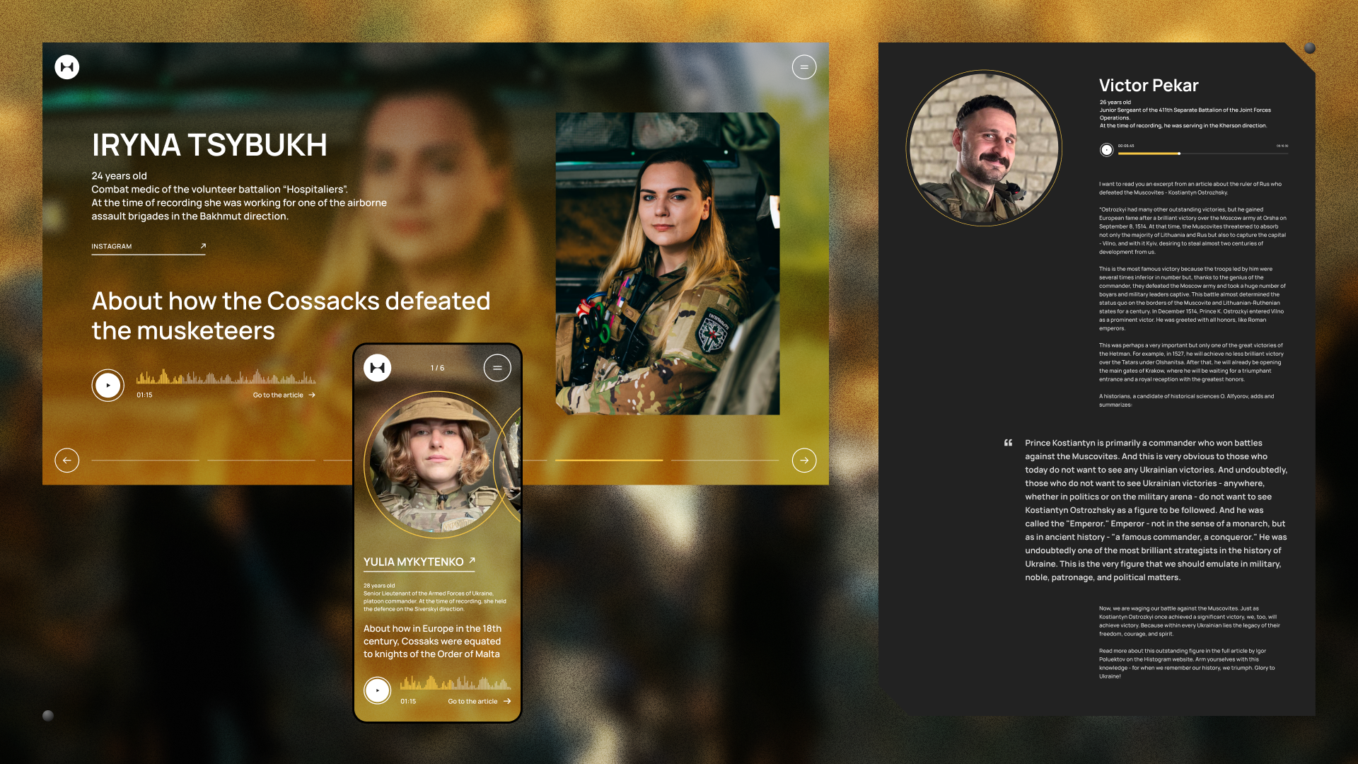 Each character recites an excerpt and invites users to explore the complete historical material to deepen their knowledge about the real heroes of Ukraine from various periods and to see parallels between the events of those times and the ongoing war.