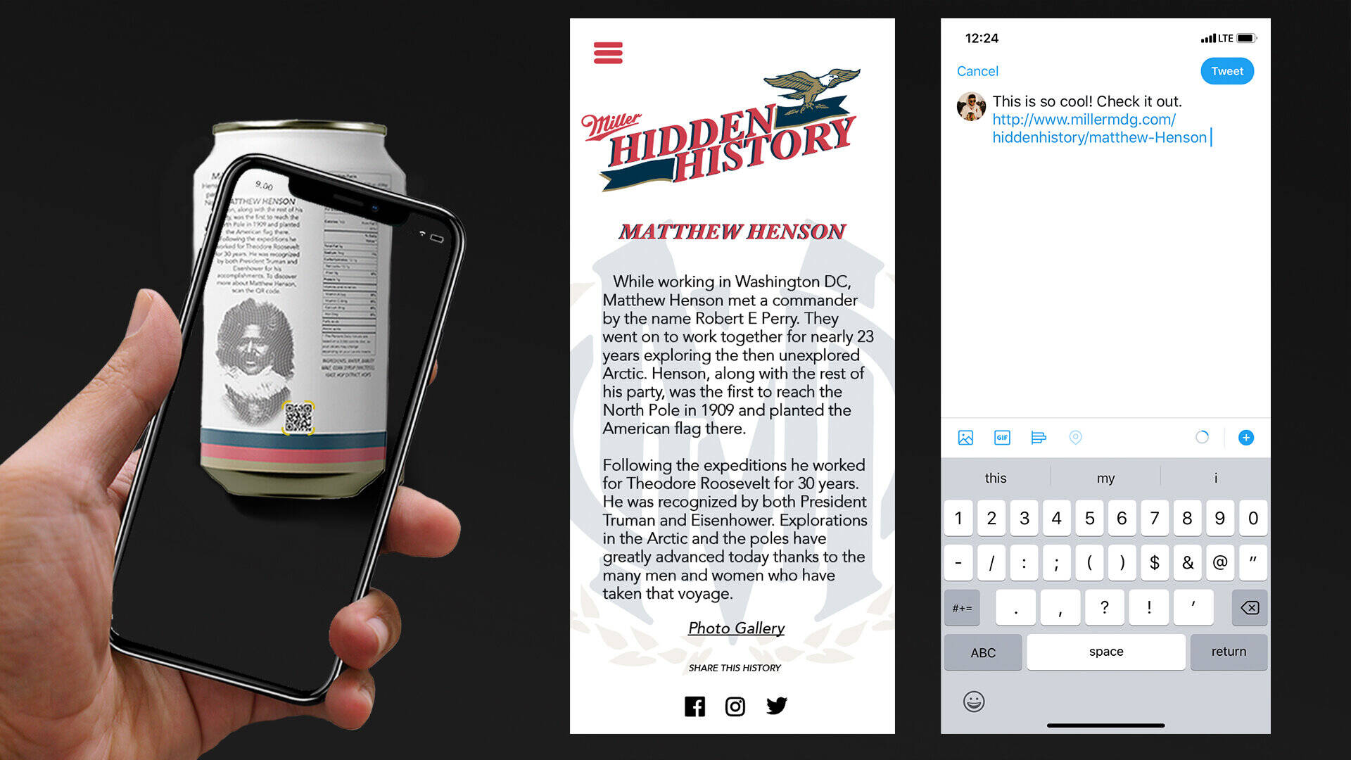 The purpose behind Hidden History is to use Miller Genuine Draft's platform to showcase successful people in history, whose achievements weren't shown in textbooks or acknowledged by society. As you drink your beer, the ink on the can changes, revealing a biography of one of these figures in history. A portion of the proceeds goes toward a scholarship fund to help individuals (21+) who are returning to school.