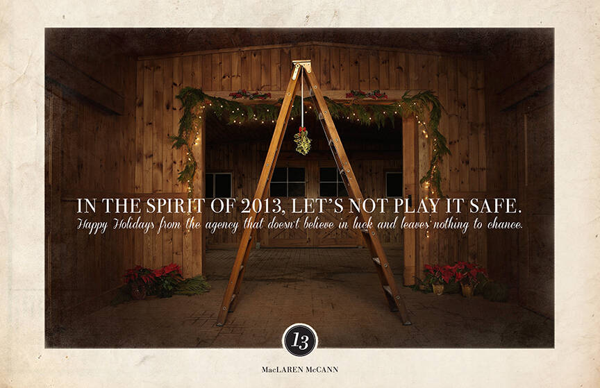 This professional campaign titled 'Holiday card' was published in Canada in December, 2012. It was created for the brand: McCann, by ad agency: McCann. This Static Images medium campaign is related to the Agency Self-Promo industry and contains 1 media asset. It was submitted almost 13 years ago.