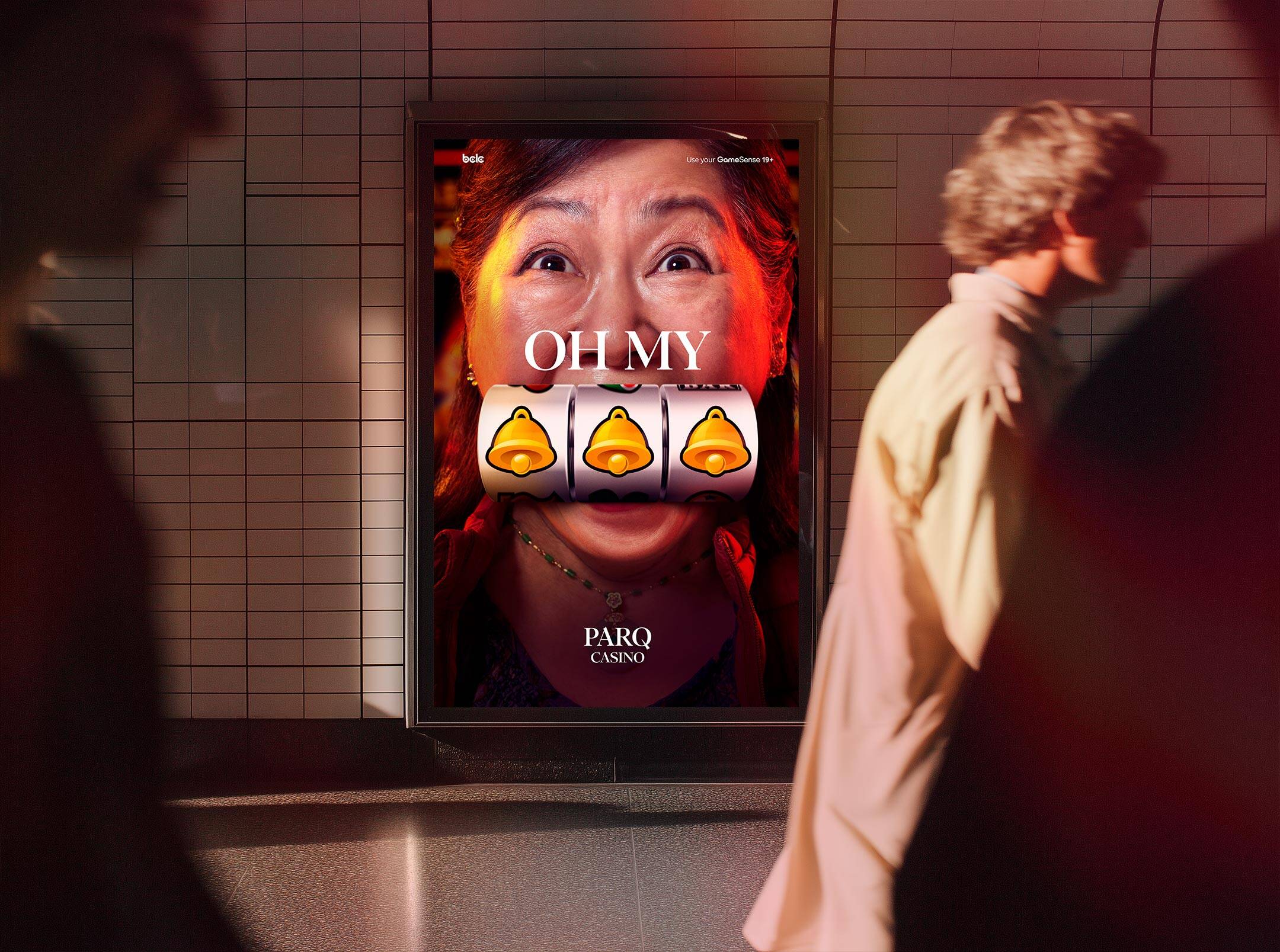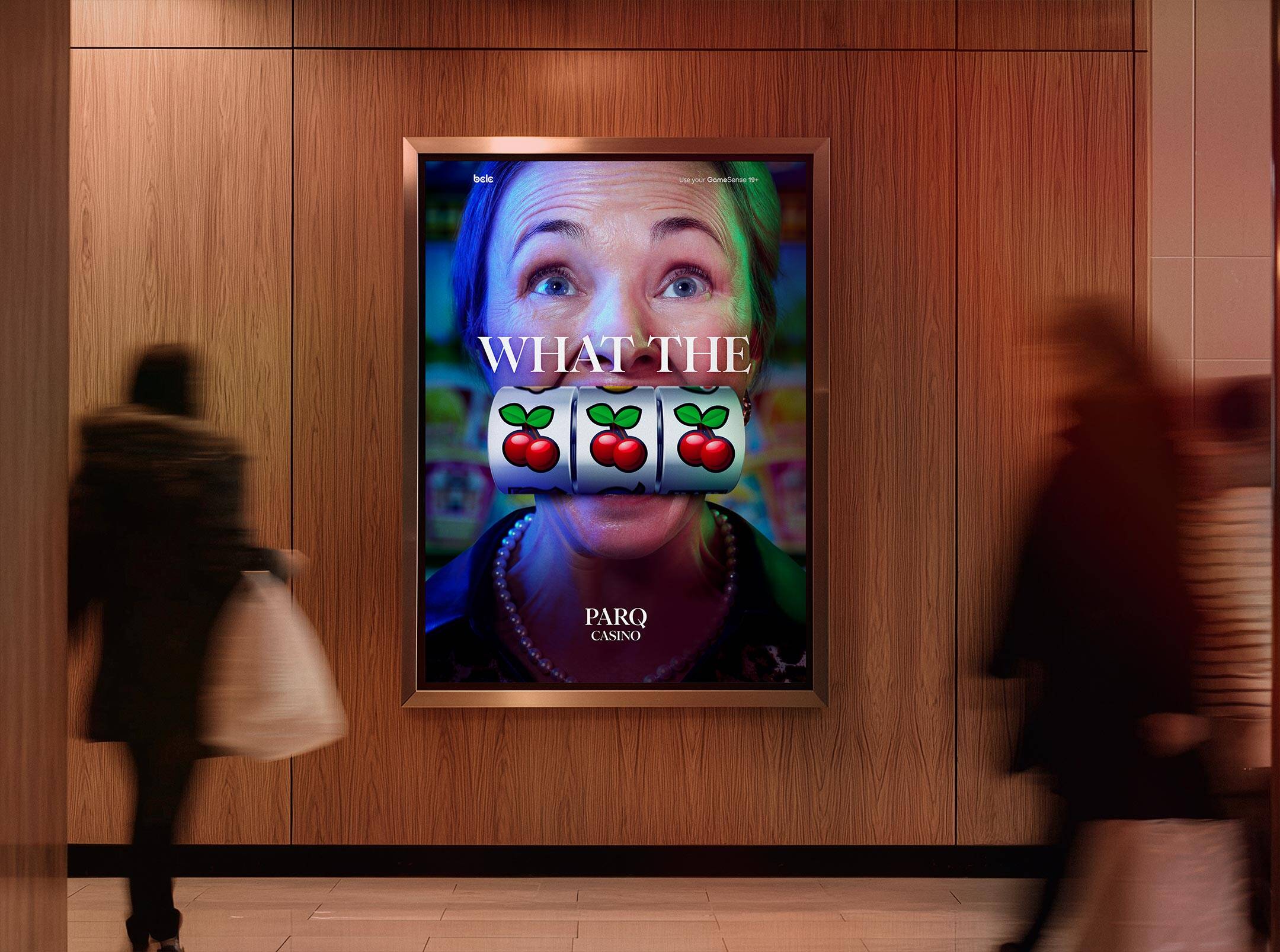 There’s one moment every player who walks through Parq’s doors is there to experience. Winning creates such an impulsive, human response, we knew capturing someone in that state of joy would be very compelling. So we captured extreme close ups of a variety of players expressing shock in an unfiltered moment of excitement, with iconic slot machine symbols helping censor out their potentially profane expressions of euphoria. The bright lights and neon surrounding them leave no doubt that these winners are playing at Parq.