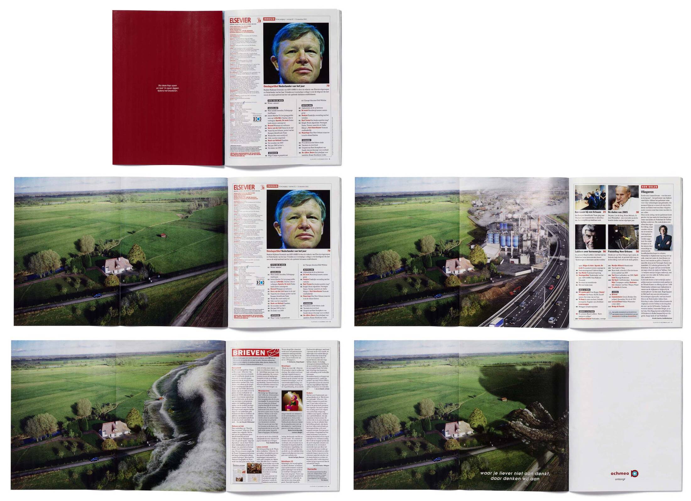 Every time you flip the page something horrible is about to happen to your house. Great way to demonstrate the importance of home insurance. Please provide translation if you read Dutch.