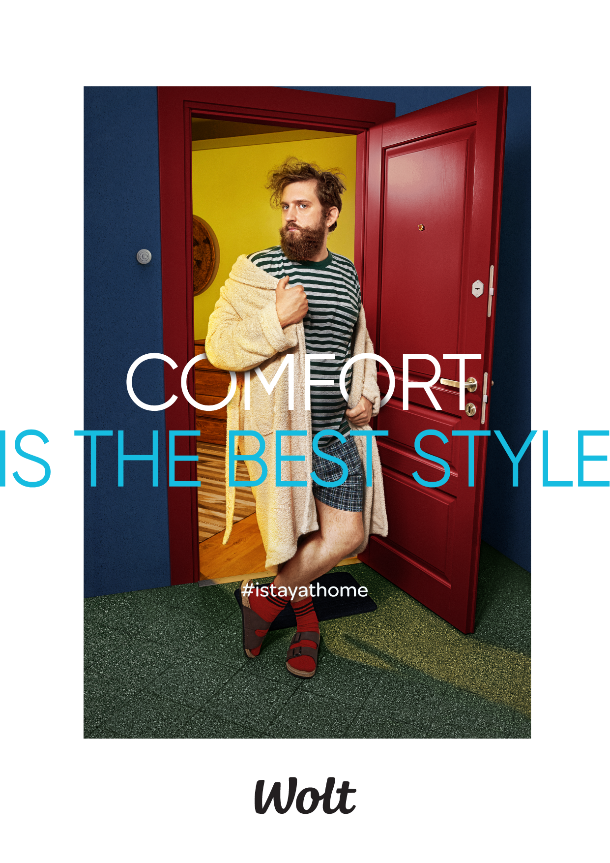 Wolt, the leader in food delivery in the Baltic States, wanted to make a campaign that shows the positive side of staying at home. To achieve that, they decided to remind people that home is where you feel the most comfortable, and challenged them to feel proud instead of ashamed of their "home fashion".