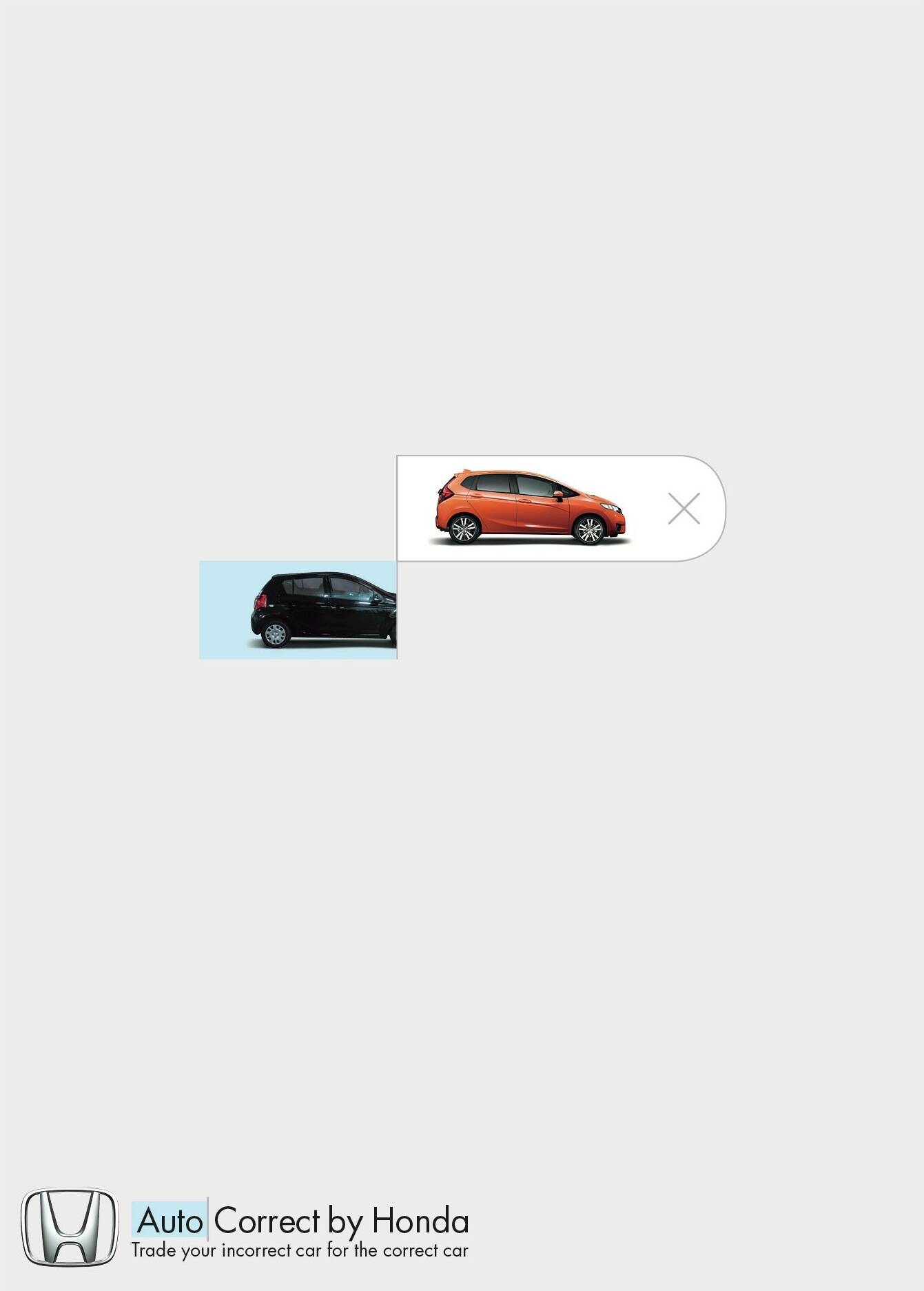 This professional campaign titled 'Honda Auto Correct' was published in Israel in July, 2015. It was created for the brand: Honda, by ad agency: McCann. This Print medium campaign is related to the Automotive and Personal Transportation industry and contains 3 media assets. It was submitted about 10 years ago.