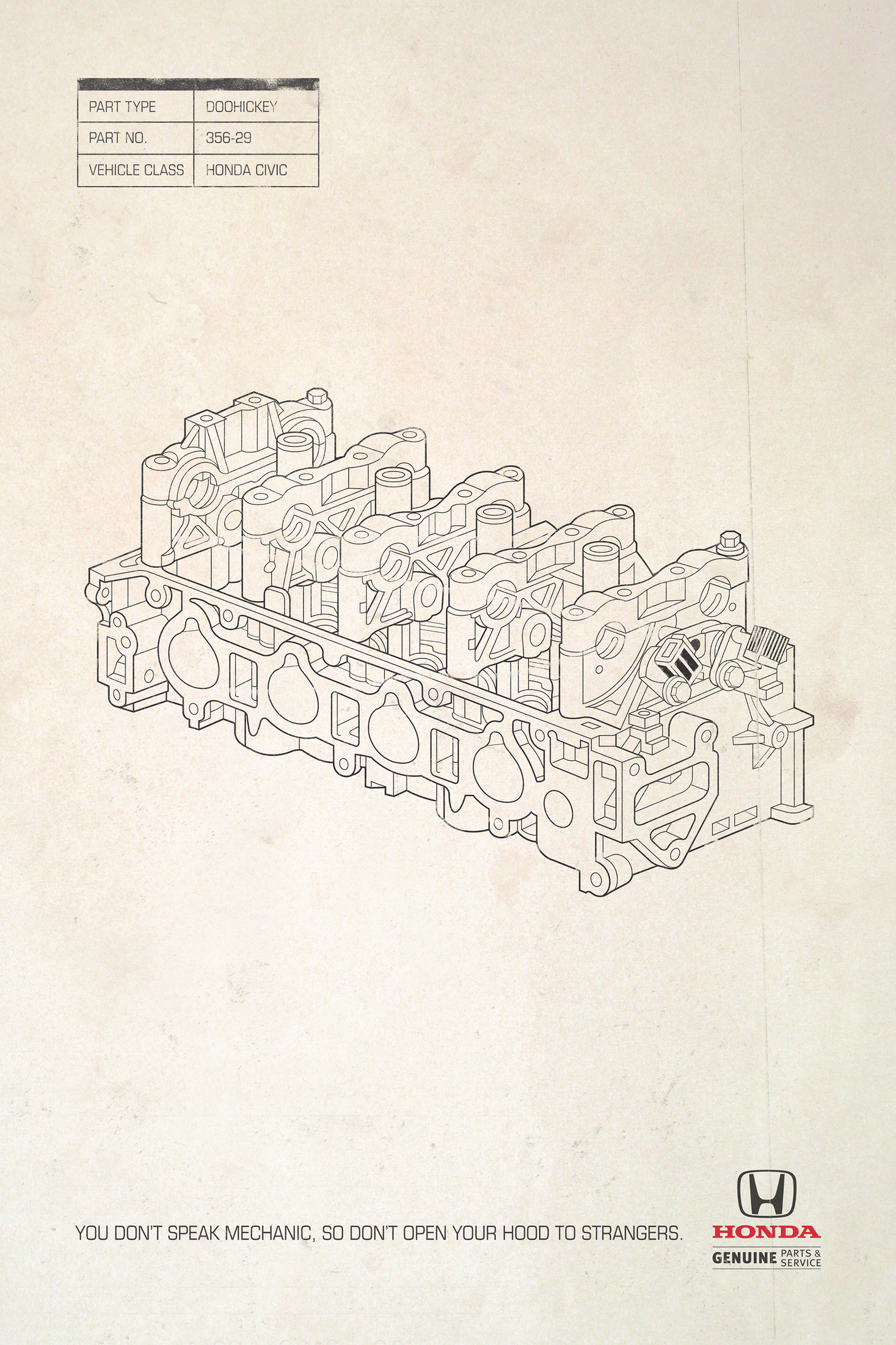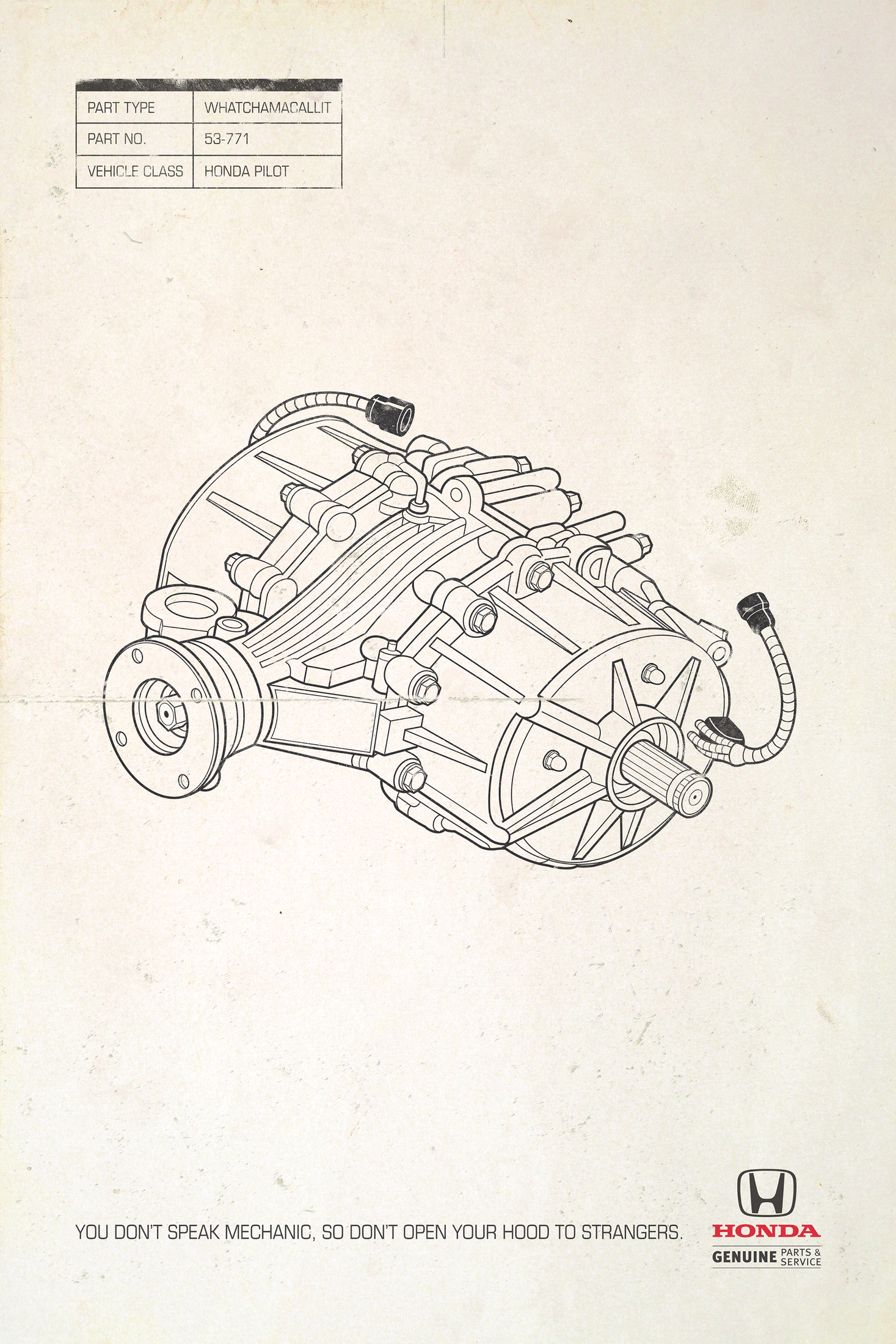 This professional campaign titled 'Honda Parts & Service - Whatchamacallit, Honda Parts ...' was published in Canada in November, 2015. It was created for the brand: Ontario Honda Dealers Association, by ad agency: ds+p. This Print medium campaign is related to the Automotive and Personal Transportation industry and contains 2 media assets. It was submitted about 10 years ago.