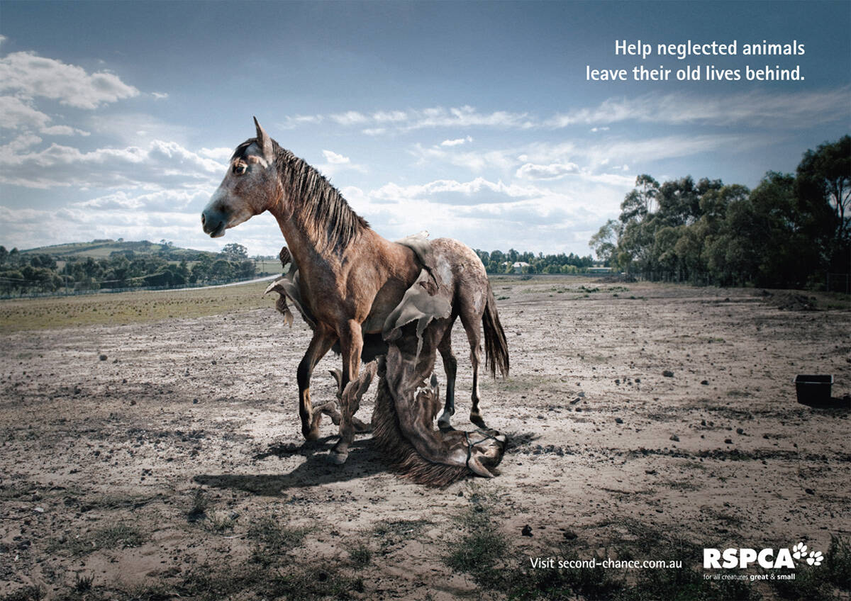 This professional campaign titled 'Horse, Dog' was published in Australia in April, 2010. It was created for the brand: RSPCA, by ad agency: M&C Saatchi. This Print medium campaign is related to the Public Interest industry and contains 2 media assets. It was submitted over 15 years ago.