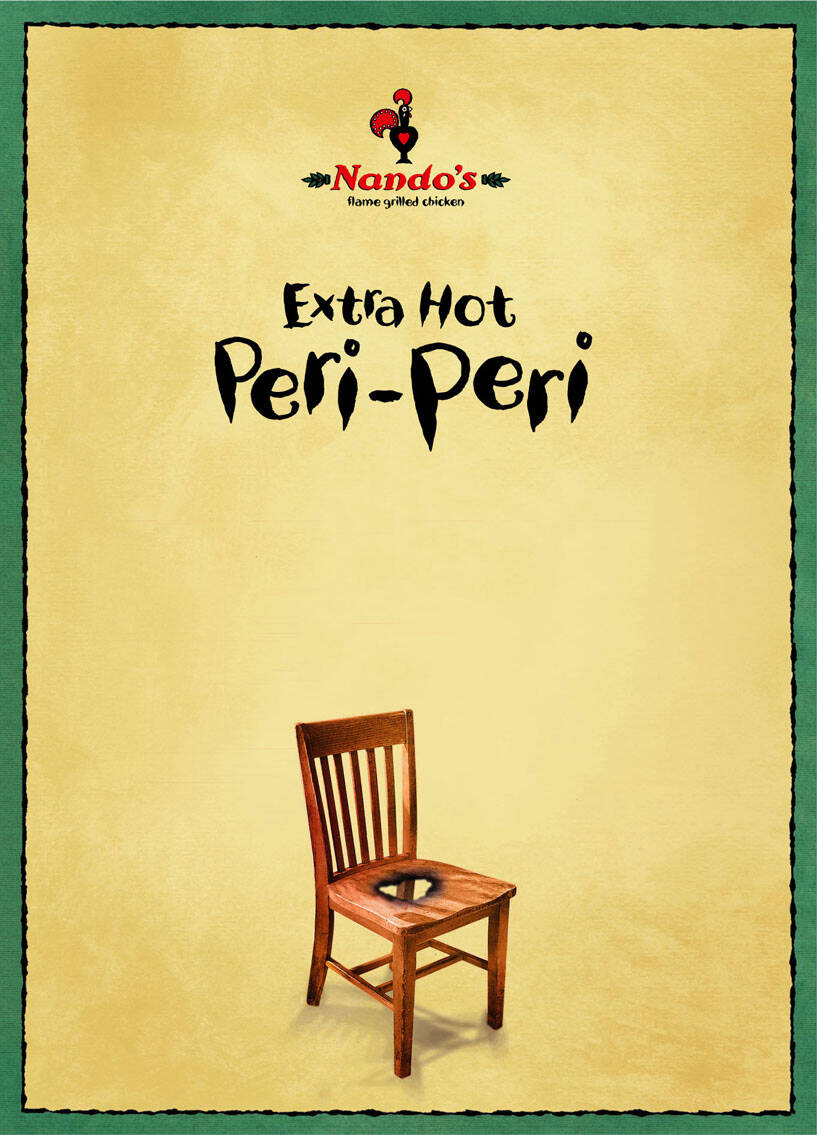 This professional campaign titled 'Hot Peri-Peri' was published on November 01, 2006. It was created for the brand: Nandos, by ad agency: Percept Gulf - Hakuhodo. This Print medium campaign is related to the Food industry and contains 2 media assets. It was submitted about 19 years ago.