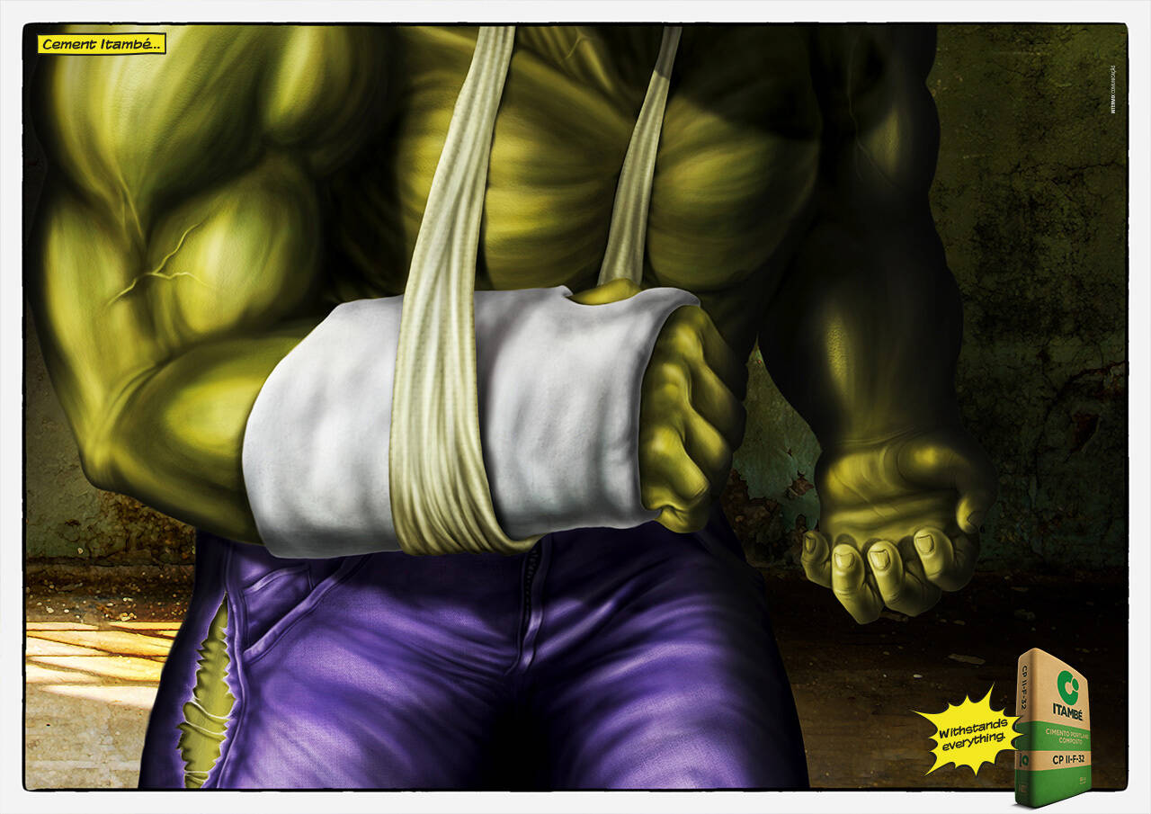 This professional campaign titled 'Hulk' was published in Brazil in October, 2012. It was created for the brand: Cement Itambe, by ad agency: Intermix. This Print medium campaign is related to the Industrial industry and contains 1 media asset. It was submitted about 13 years ago.