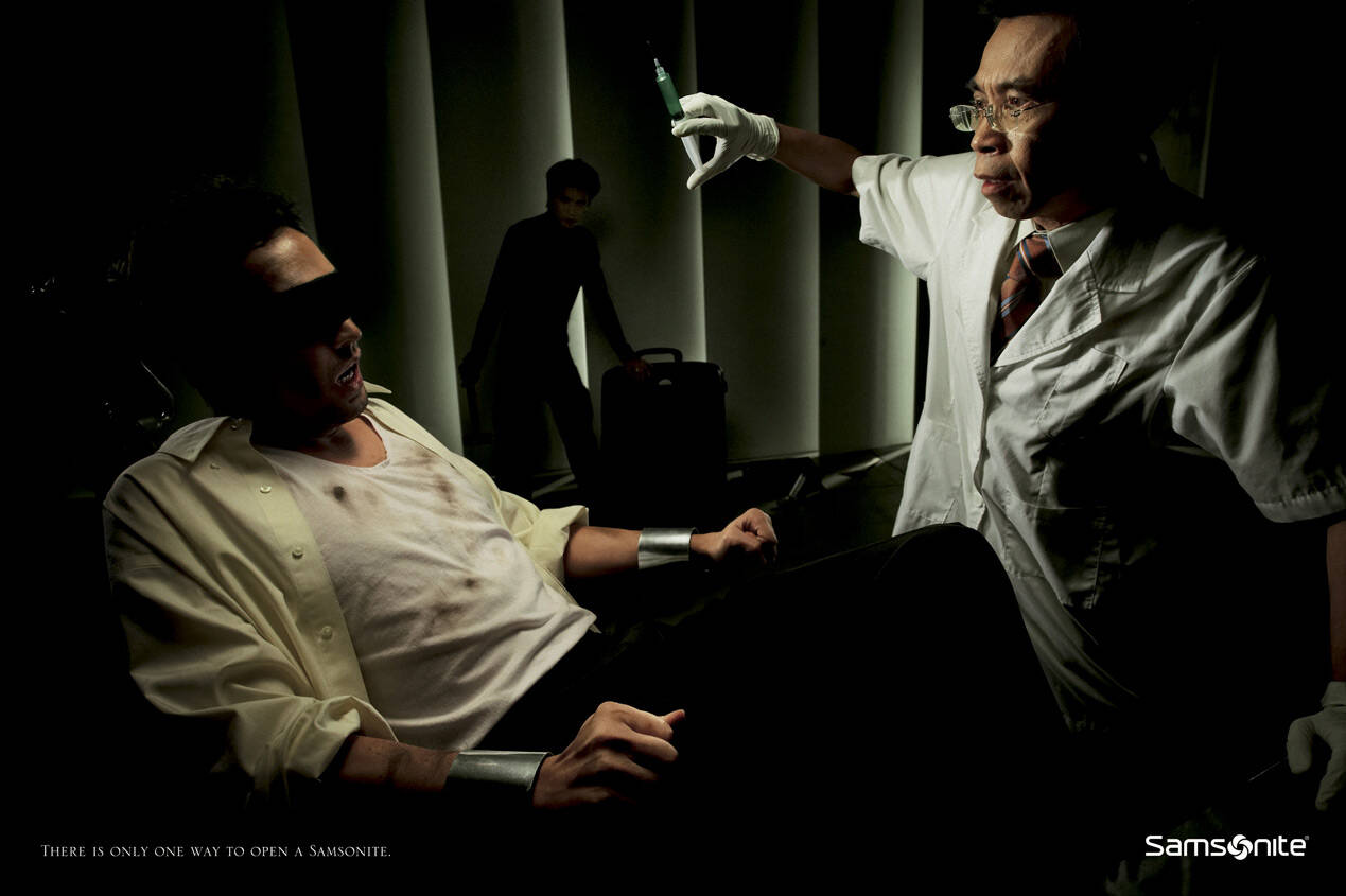 This professional campaign titled 'Hypnotize, Interrogate, Torture' was published on November 01, 2006. It was created for the brand: Samsonite, by ad agency: TBWA-ISC. This Print medium campaign is related to the Personal Accessories industry and contains 3 media assets. It was submitted almost 19 years ago.