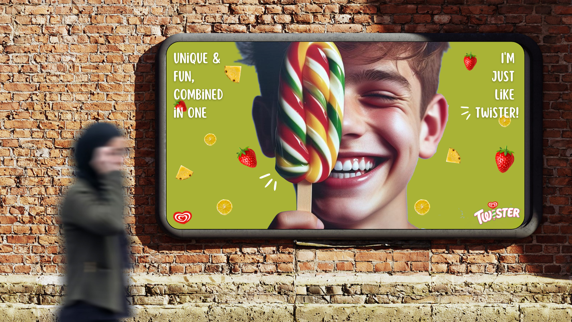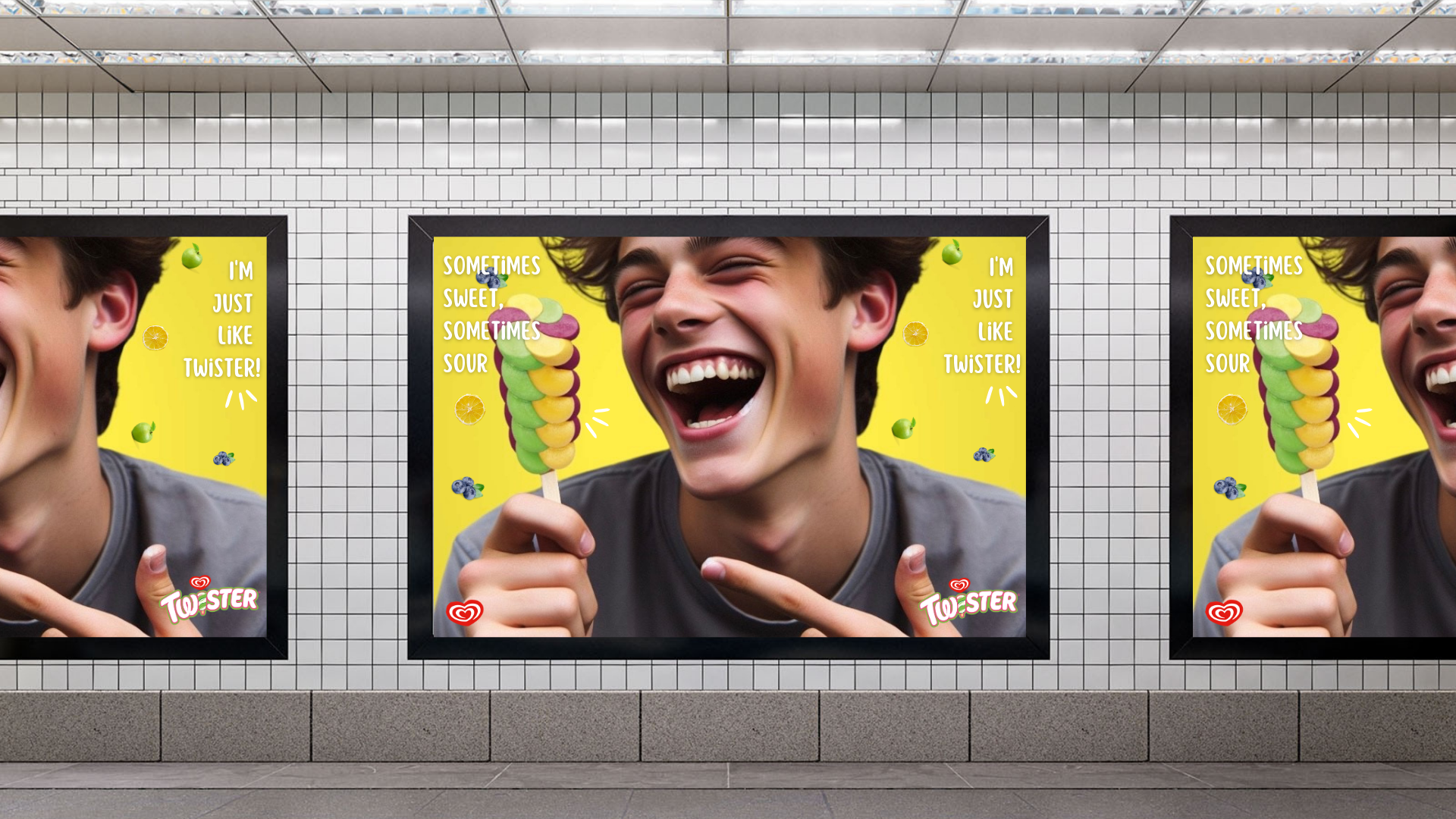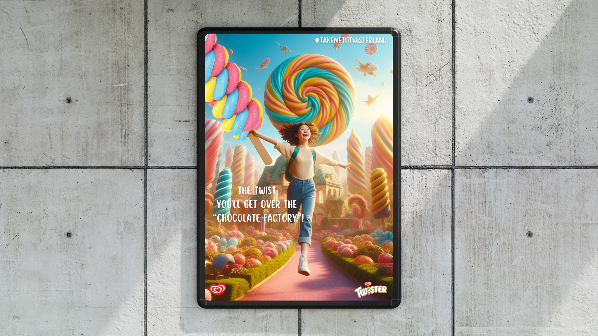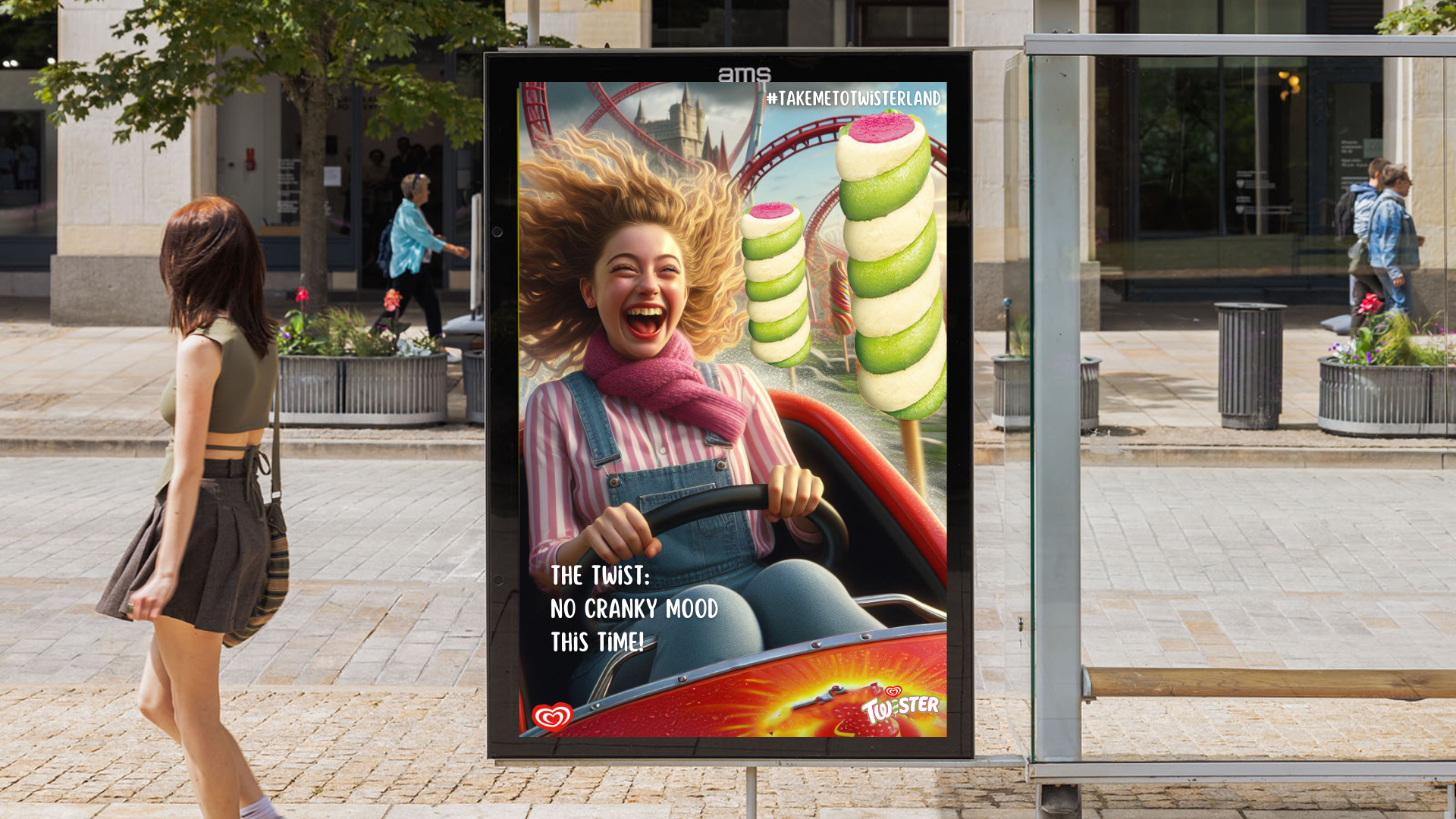 Take Me to Twisterland (Phase 2) - This would then be extended to a second phase which would promote Twisterland, a fantasy-like real world with thrilling rides, giant Twister ice-lollies, games, etc. where you can await fun, surprises, adventures, and enjoyable experiences. We've used humour to convey that Twisterland is so good that it'll bring a twist into your everyday life, something unexpected for a 16-18-year-old.