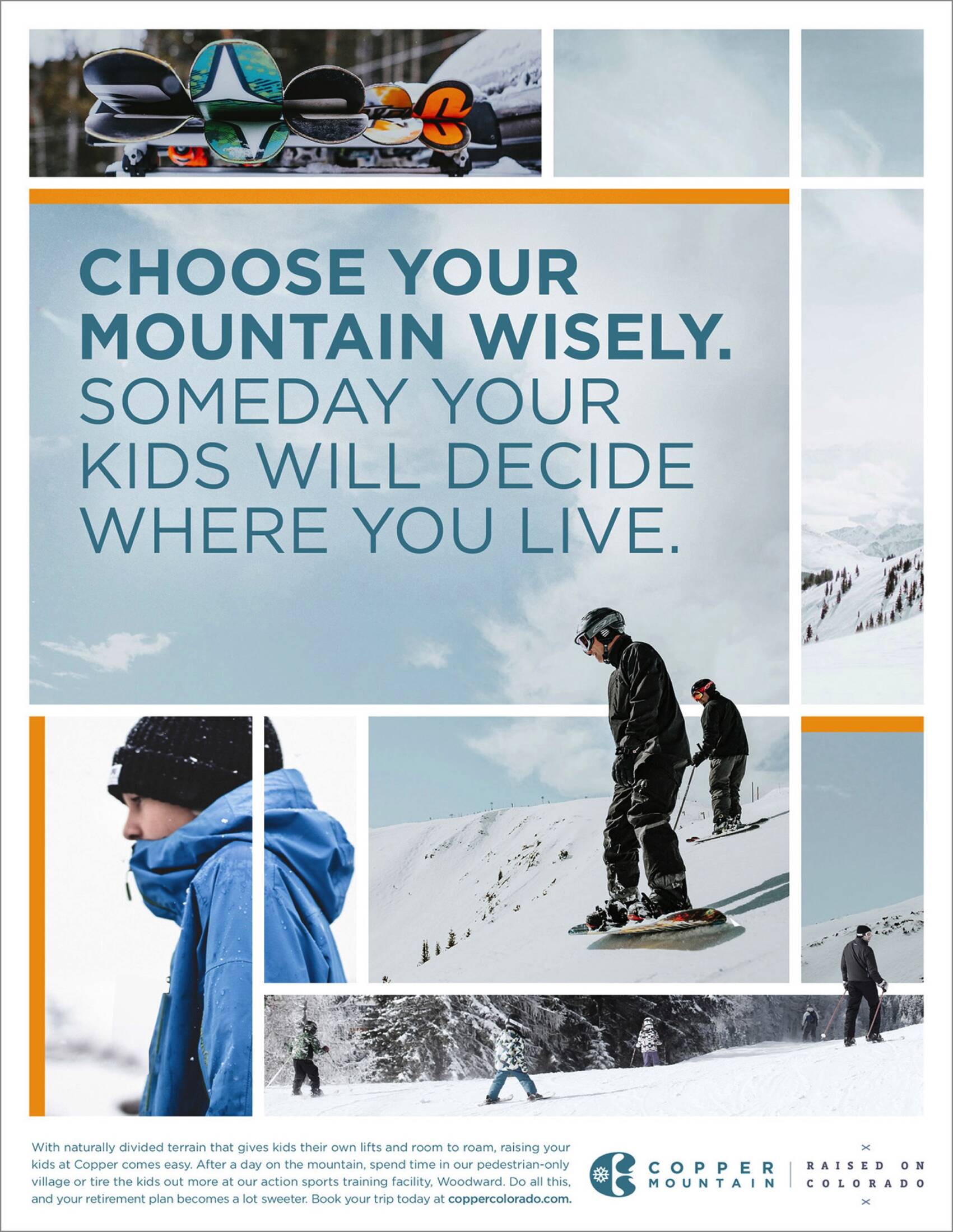 Targeting ski families, and tagged “Raised on Colorado,” the campaign creative is built around the Colorado, outdoor, family lifestyle. In the signature TV :30, titled “I Miss You,” a video game avatar sheds a tear for his former teen gamer; Brad now prefers real snowboarding to joy-stick combat. View at vimeo.com/289169693 . Similarly themed, a print full page shoes active, involved kids under the headline, “Making their reality more engaging than virtual reality,” and an outdoor board shows young skiers, snowboarders and snow-tubers under the headline, “Keeping kids off social media since 9AM.” Other advertising touts Colorado attributes that parents might want more for themselves than for their kids. A print full page shows challenging mountain terrain under the headline, “Choose your mountain wisely. Some day your kids will decide where you live.” And a billboard boasts that Copper has been “Providing legal highs since before getting high was legal.” And for the devout, 800 give-away prayer candles show a begoggled seeress, a mystical snowflake, and the caption, “Pray for snow.”