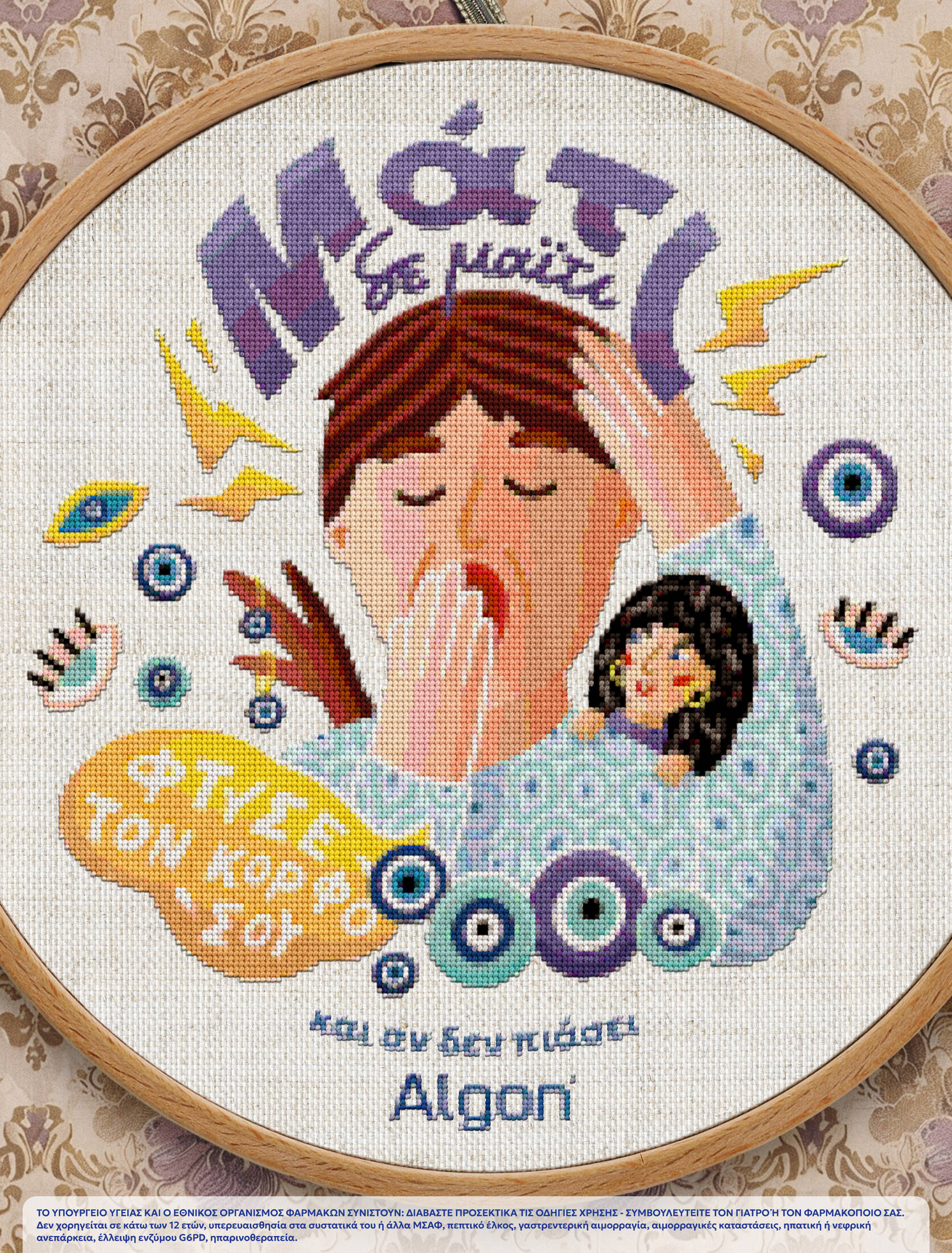 This campaign humorously portrays traditional Greek remedies for headaches, highlighting their ineffectiveness compared to Algon®. The strapline reads: “If that doesn’t work, Algon®”.