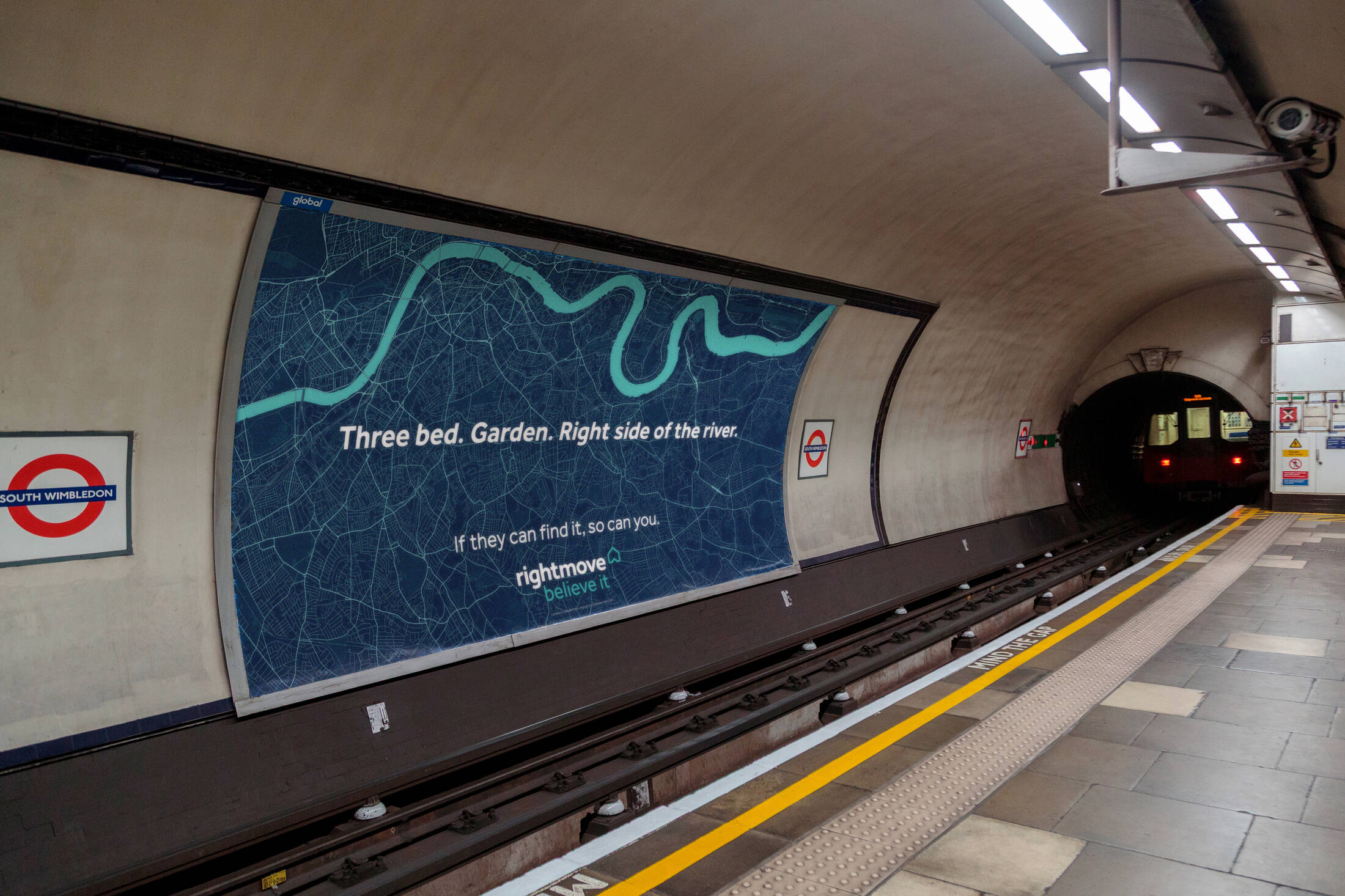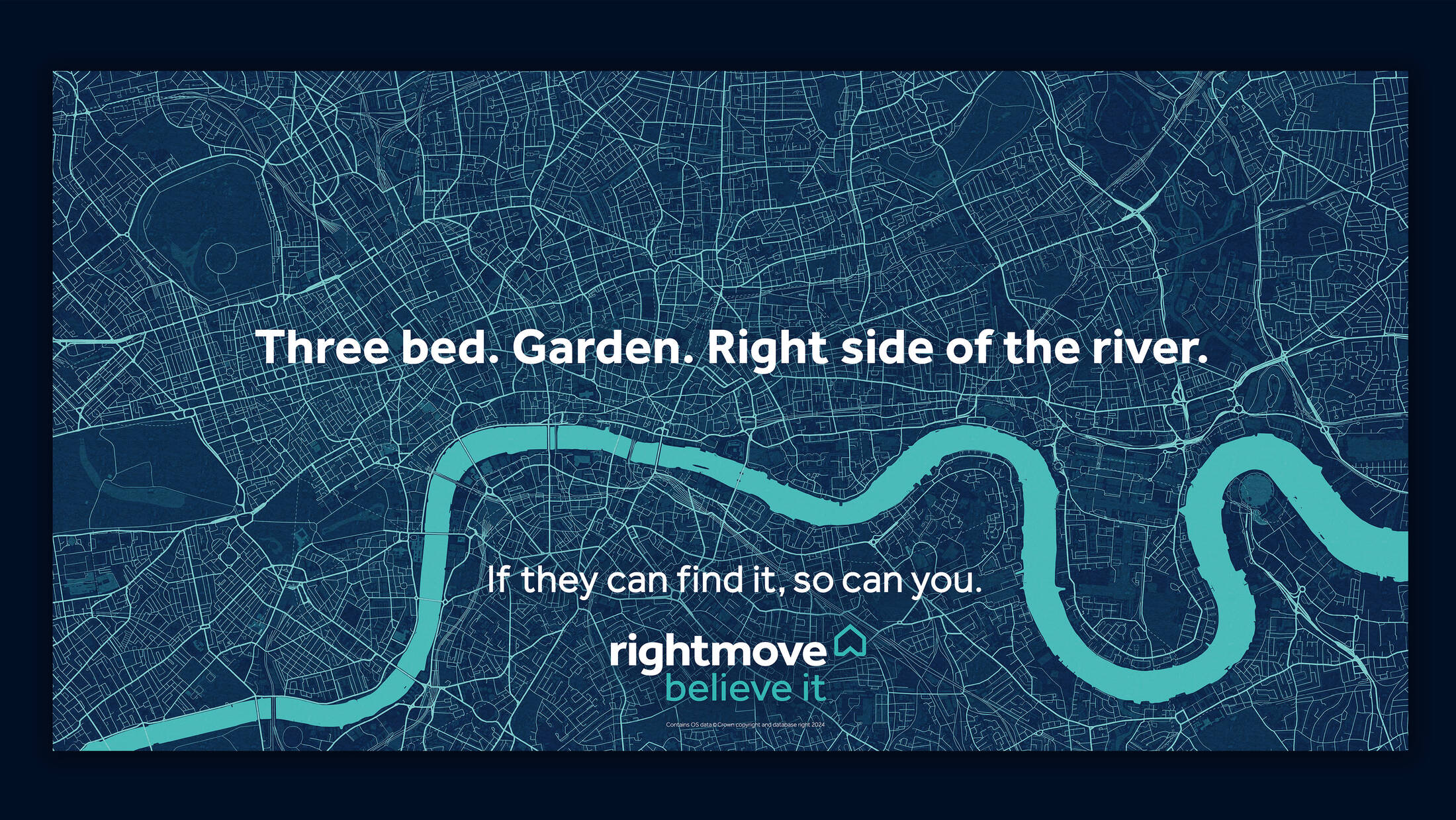 The new posters in Rightmove's 'If they can find it so can you' series play on London's biggest rivalry: north or south of the river? While the headline on the work stays the same the map of London behind it change depending on which side of the Thames the posters are seen.