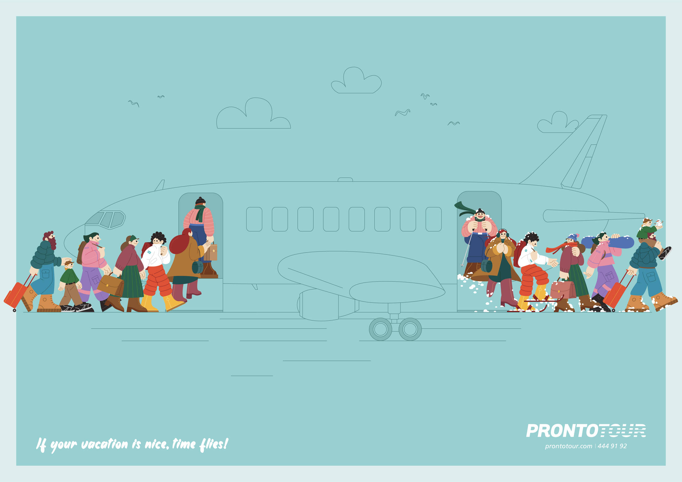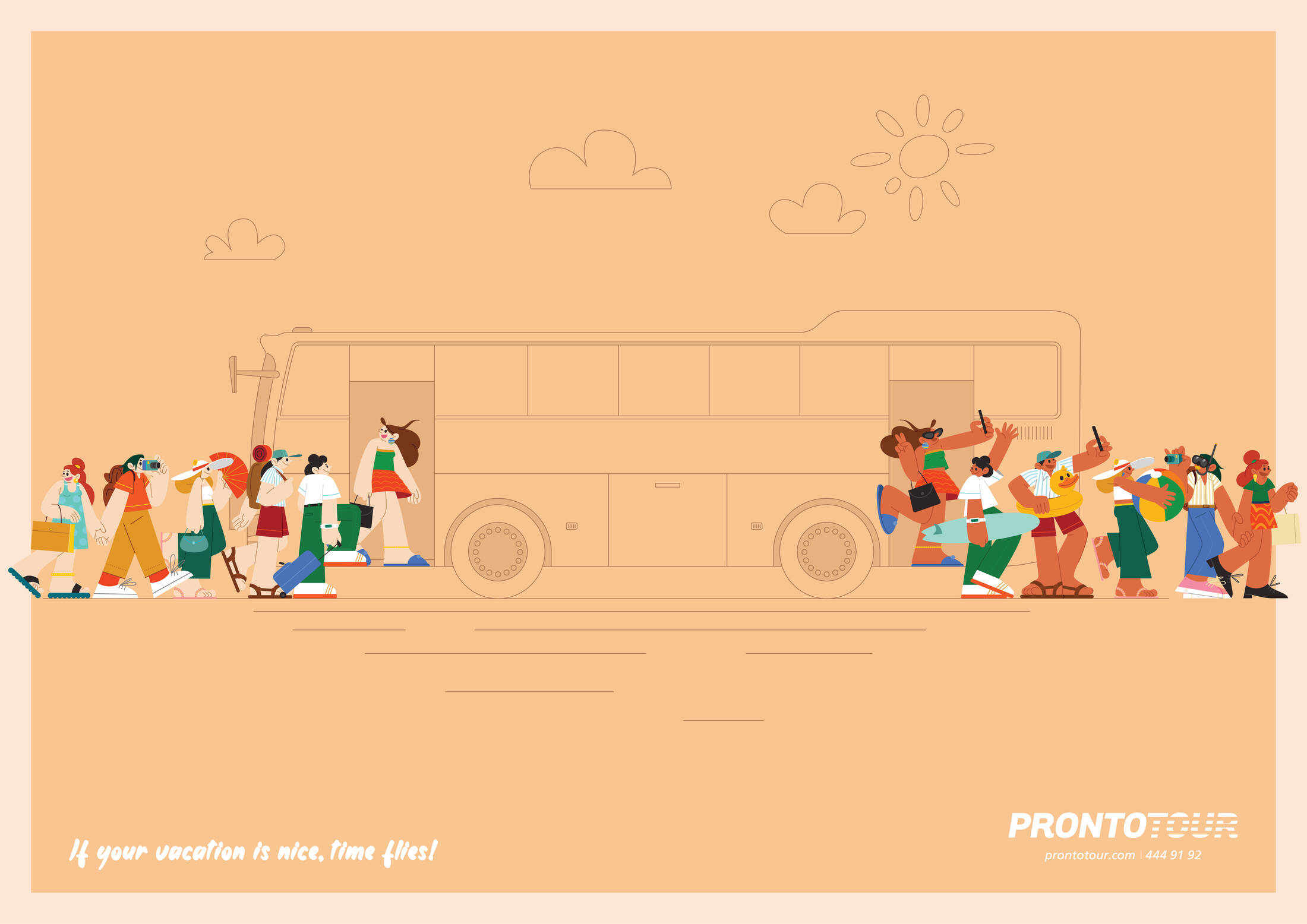 This professional campaign titled 'If your vacation is nice, time flies!' was published in Turkey in August, 2022. It was created for the brand: Prontotour, by ad agency: Tatbiki. This OOH Outdoor and Print media campaign is related to the Hospitality, Tourism and Travel and Tourism industries and contains 2 media assets. It was submitted over 3 years ago.