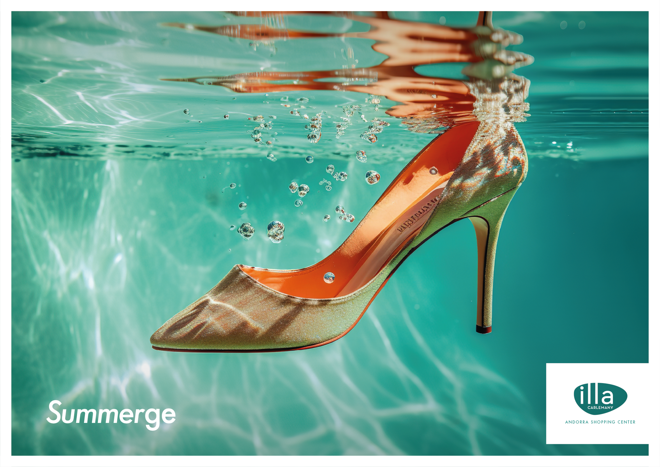 Summerge with two emes, from summer, is the summer campaign we have created for illa Carlemany, the iconic shopping centre of Andorra. First came the idea, the word, then the image in the head: fashion elements immersed in a swimming pool.