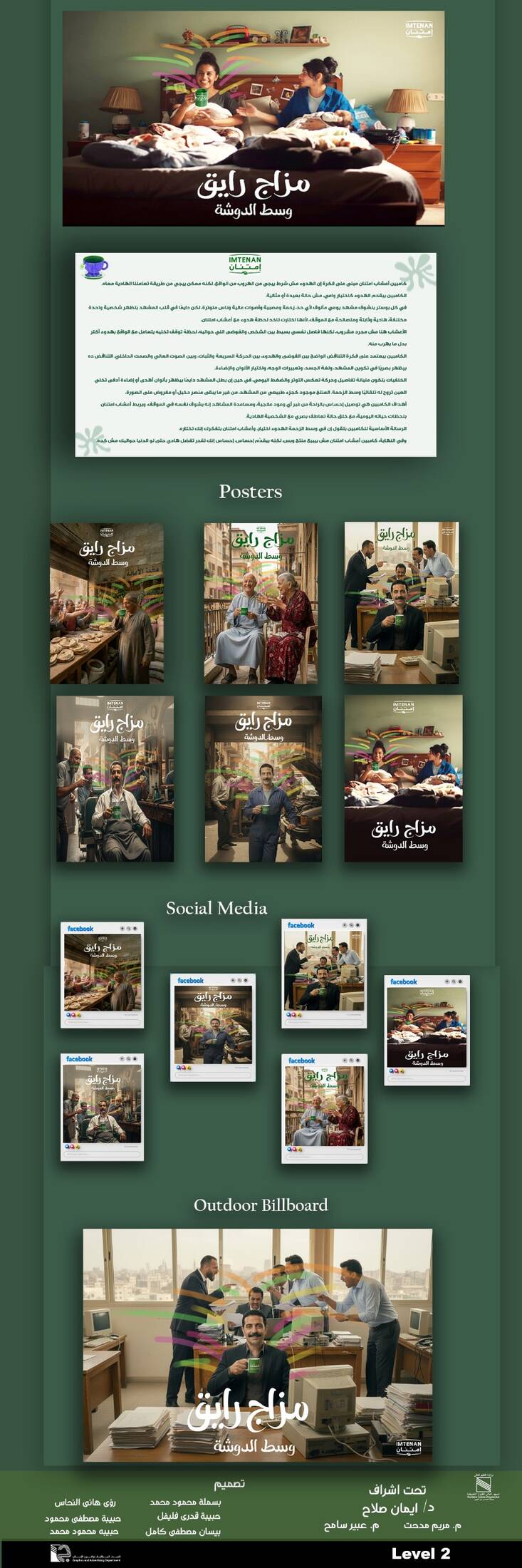 This student campaign titled 'Calm Within The Chaos' was published in Egypt in January, 2026. It was created for the brand: Imtenan, by ad school: The Higher Institute Of Applied Arts. This Design medium campaign is related to the Drinks (Non Alcoholic) industry and contains 7 media assets. It was submitted 1 day ago by Graphic Design Student : Habiba Mahmoud of Higher Institute Of Applied Arts.