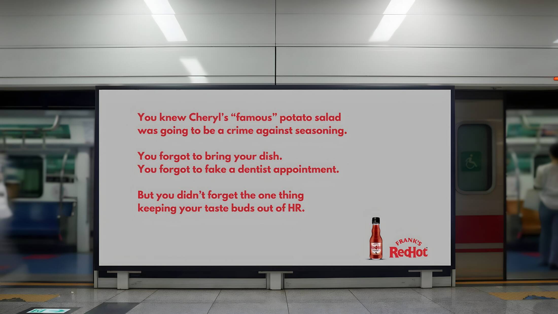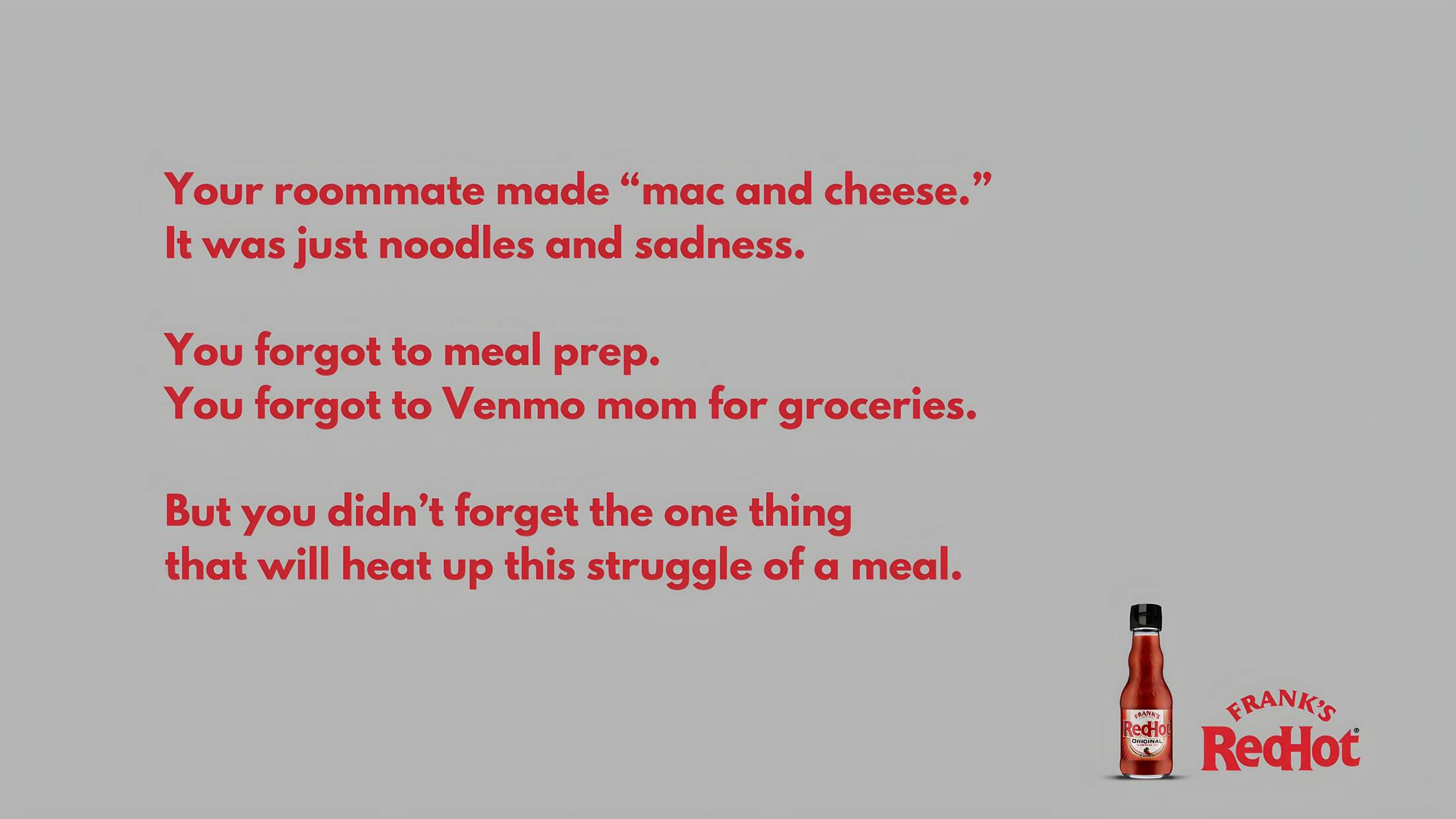 This professional campaign titled 'In My Bag' was published in United States in December, 2025. It was created for the brand: Frank's RedHot, by ad agency: S.I. Newhouse School of Public Communications. This OOH Outdoor and Print media campaign is related to the Food industry and contains 3 media assets. It was submitted about 15 hours ago.
