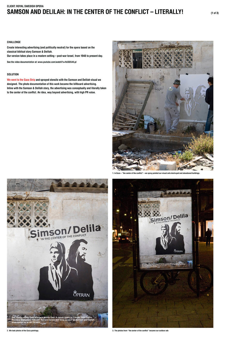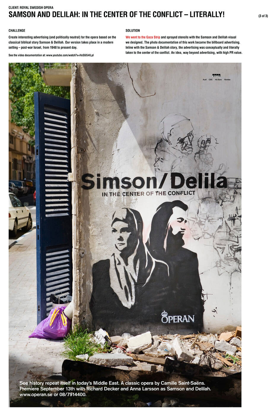 This professional campaign titled 'In the center of the conflict' was published on October 09, 2008. It was created for the brand: Royal Swedish Opera, by ad agency: Jung von Matt. This Ambient medium campaign is related to the Recreation, Leisure industry and contains 3 media assets. It was submitted about 17 years ago.