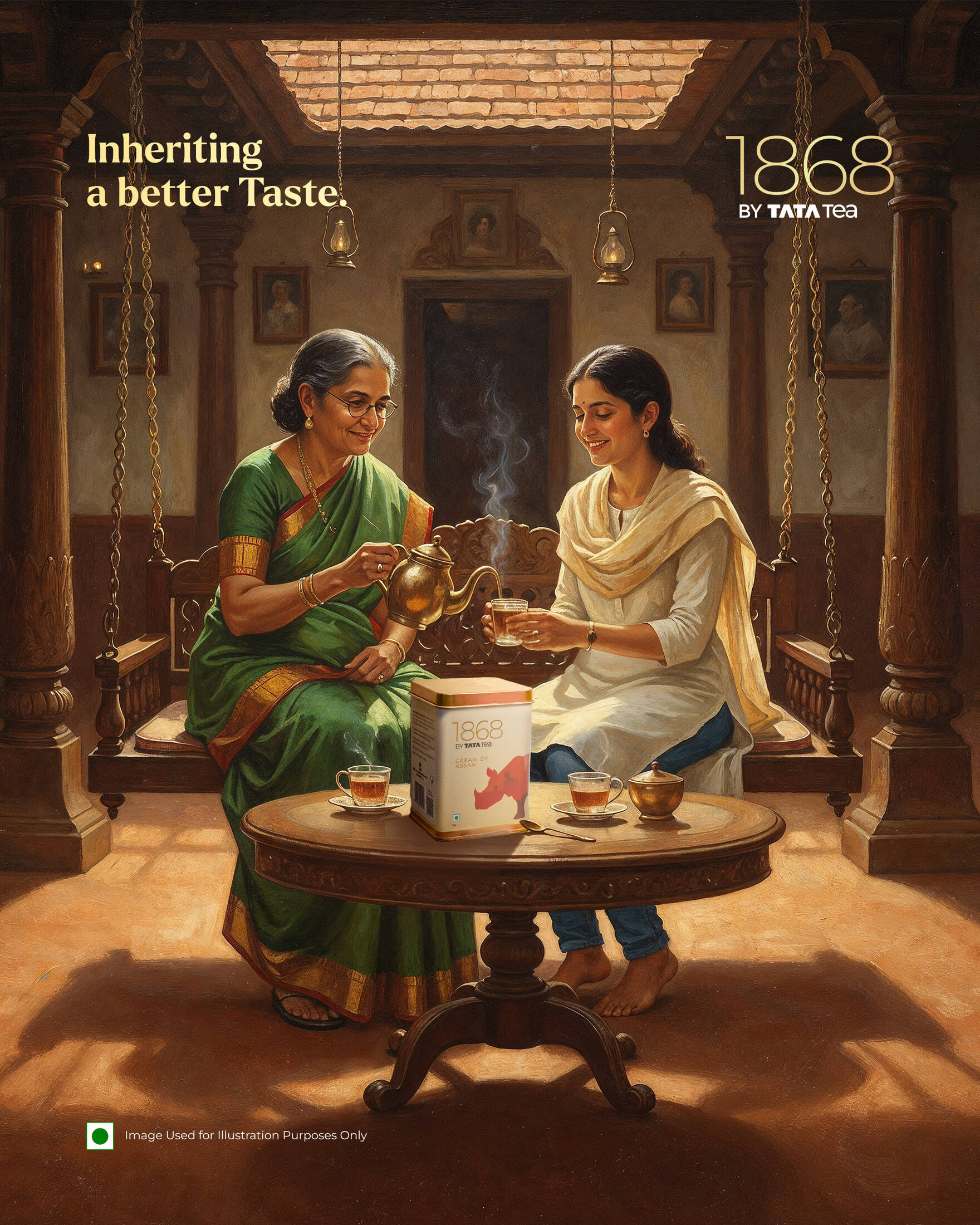 'Inheriting a better taste', Because finer tastes are inherited, passed on. It's a part of legacy. 1868 tea by Tata