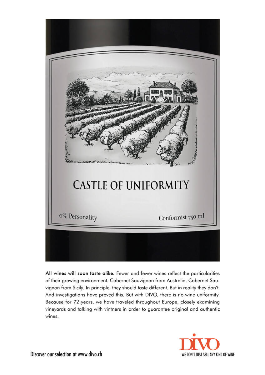 This professional campaign titled 'Industry, Illusory, Uniformity' was published in Switzerland in March, 2008. It was created for the brand: Divo, by ad agency: McCann. This Print medium campaign is related to the Alcoholic Drinks industry and contains 3 media assets. It was submitted over 17 years ago.