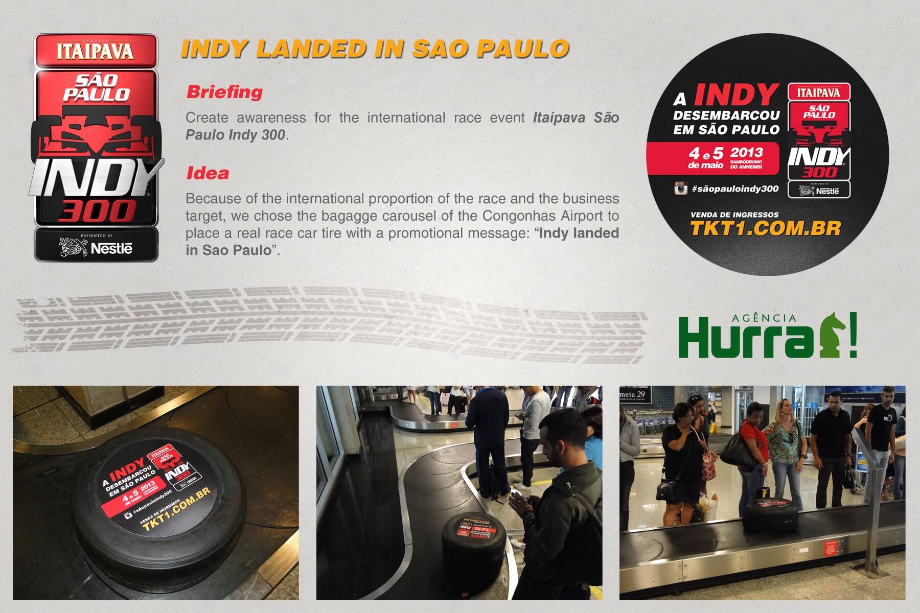 This professional campaign titled 'Indy Lands' was published in Brazil in April, 2013. It was created for the brand: Indy, by ad agency: Hurra. This Ambient medium campaign is related to the Recreation, Leisure industry and contains 1 media asset. It was submitted over 12 years ago.