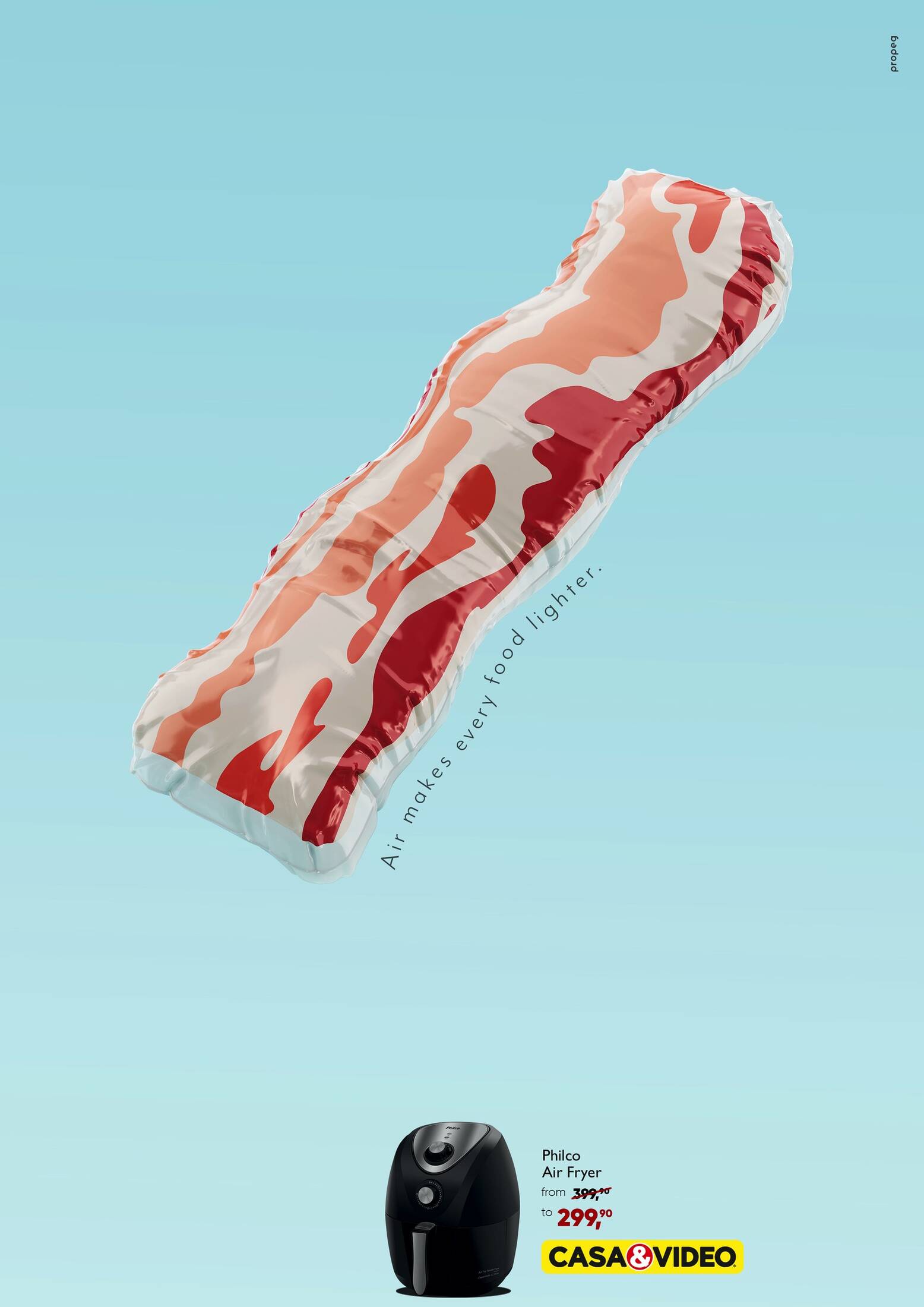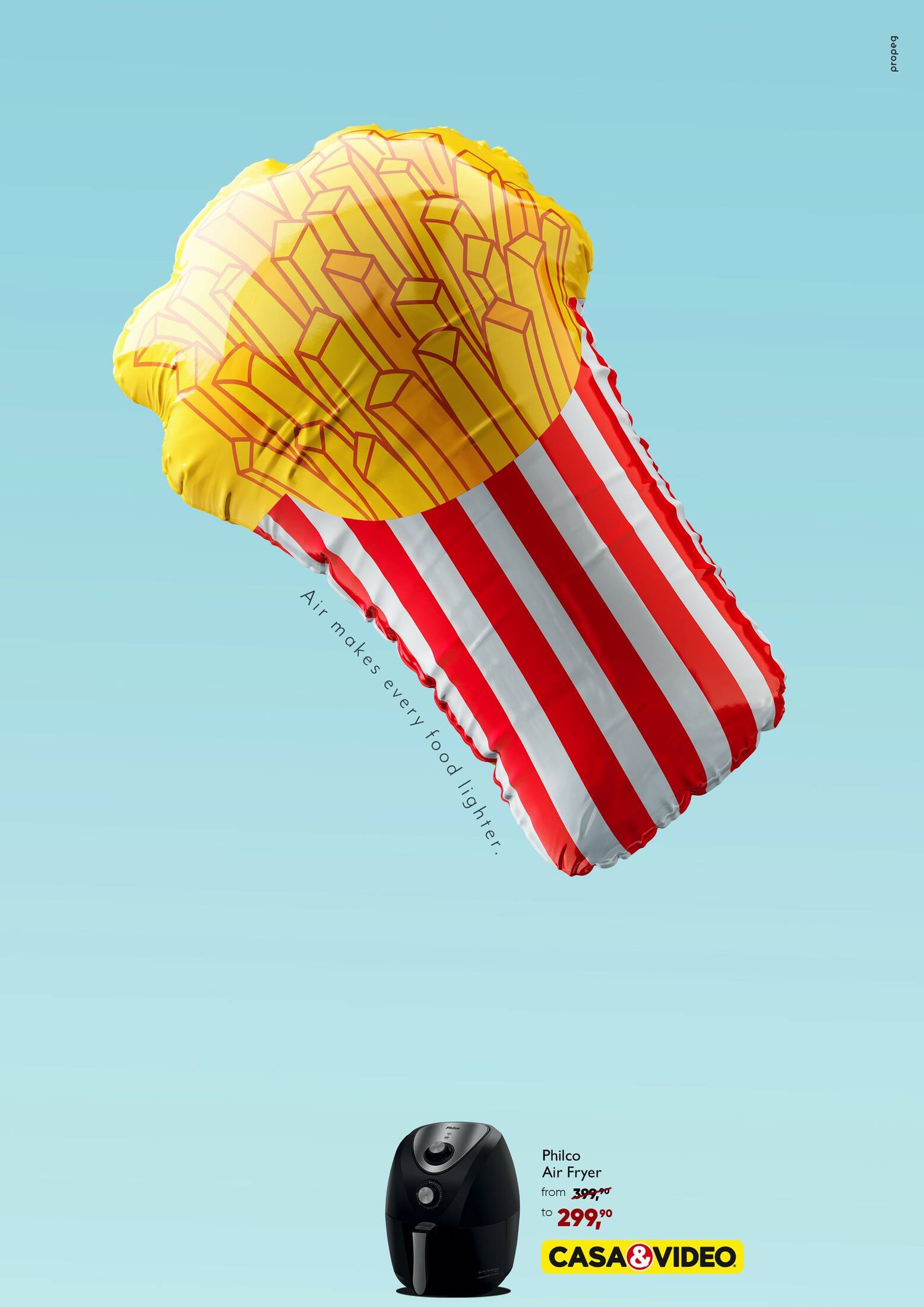 The campaign shows fatty foods floating in the shape of inflatable balloons to sell a new model of a Philco Air Fryer.