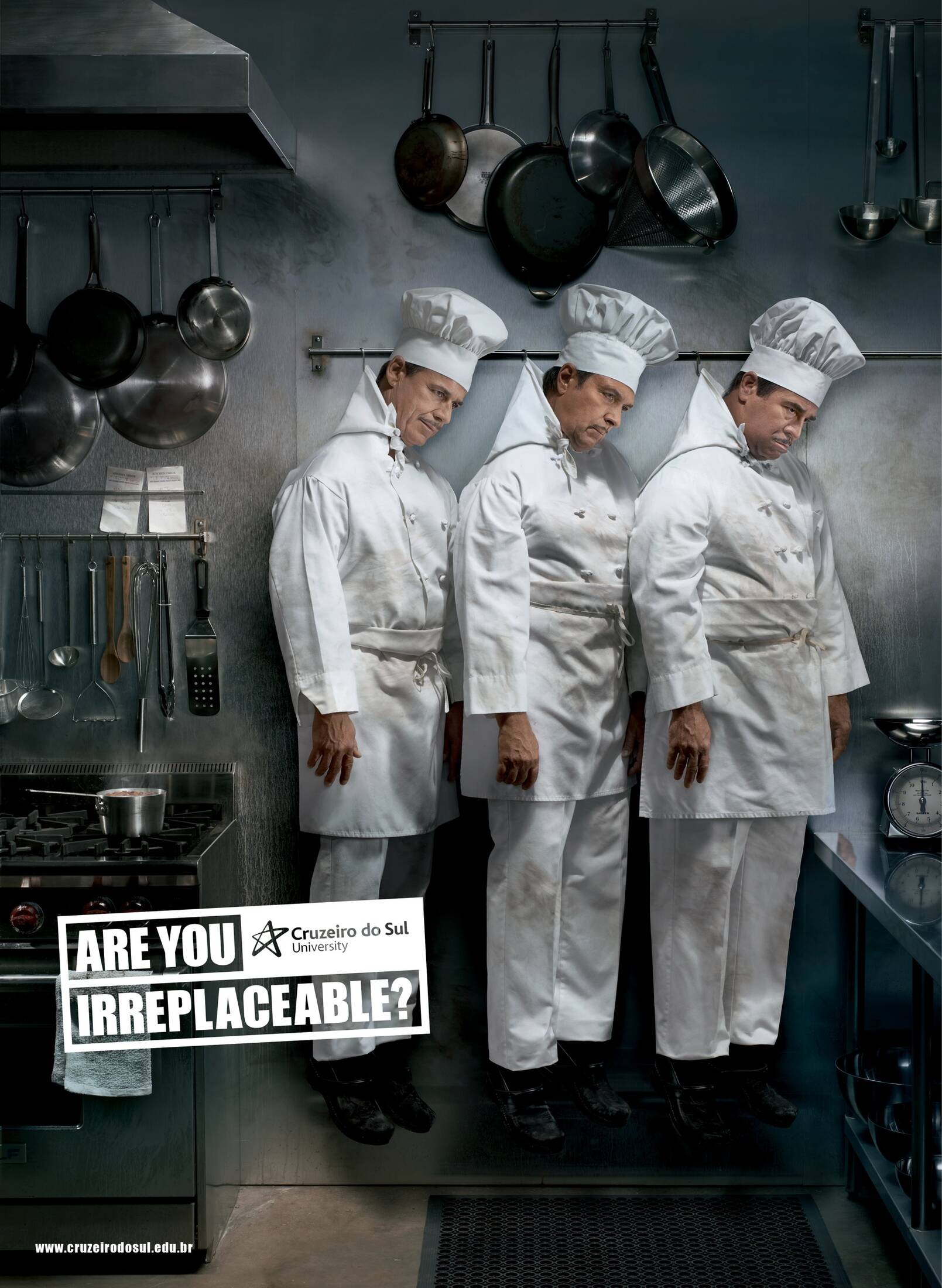 This professional campaign titled 'Irreplaceable' was published in Brazil in May, 2014. It was created for the brand: Cruzeiro do Sul University, by ad agency: FCB. This Print medium campaign is related to the Education industry and contains 3 media assets. It was submitted over 11 years ago.