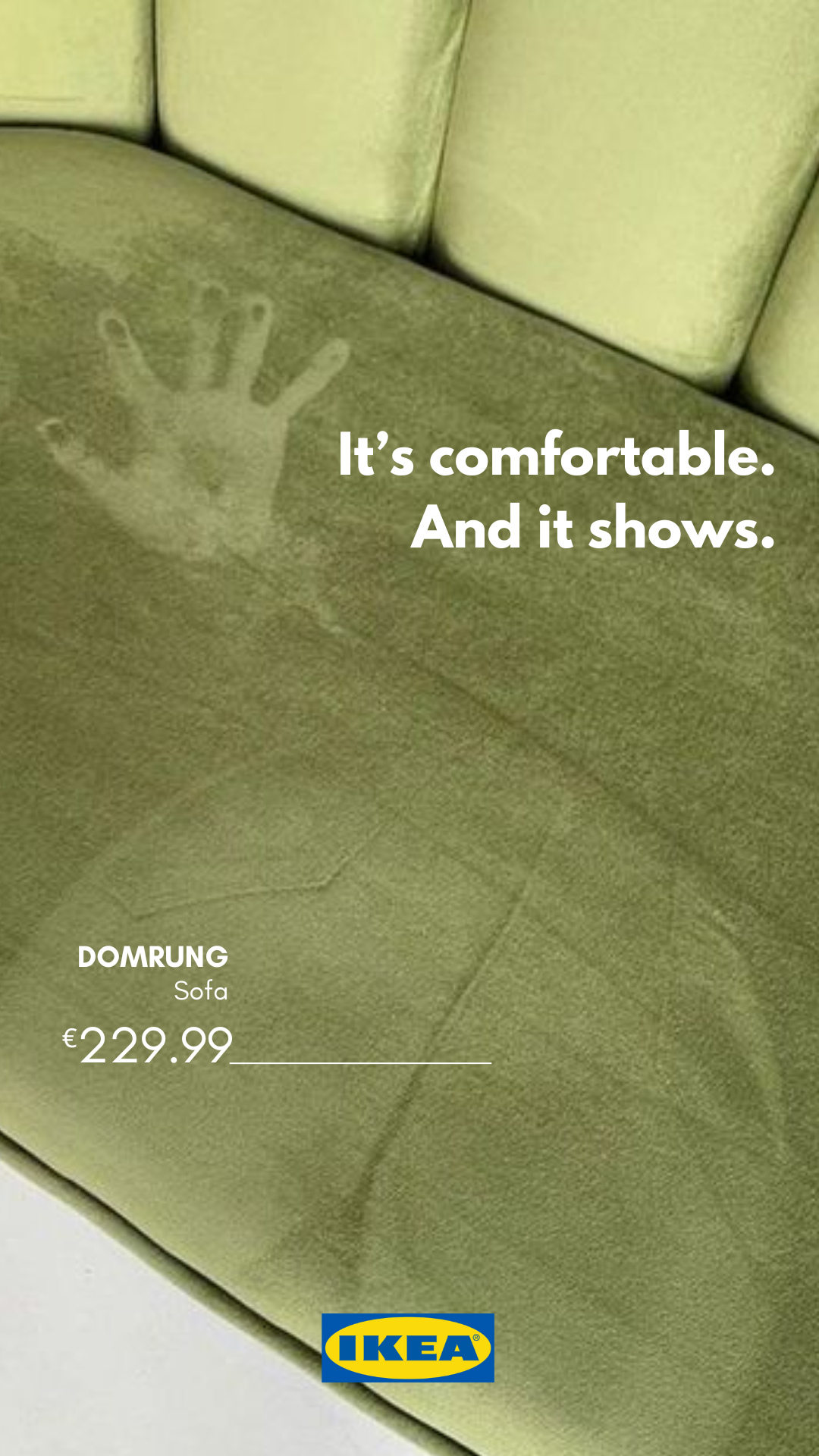 In this honest IKEA ad, we see the signs left behind on furniture that is extremely comfortable make by IKEA, brought to you by IKEA.