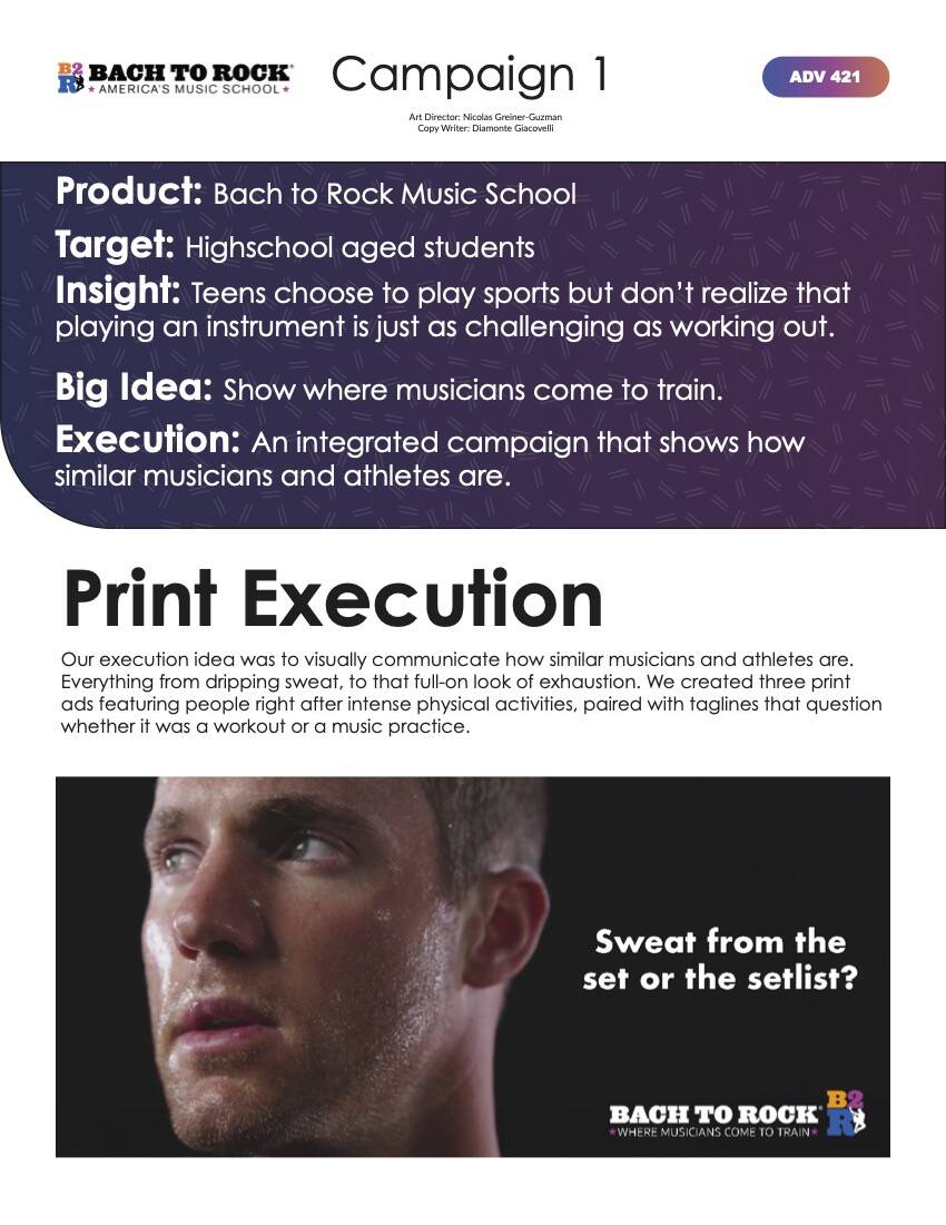 This professional campaign titled 'JAMNASIUM' was published in United States in December, 2025. It was created for the brand: Bach 2 Rock, by ad agency: Syracuse University. This Integrated medium campaign is related to the Education and Music industries and contains 7 media assets. It was submitted 2 days ago by Diamonte "D" Giacovelli.