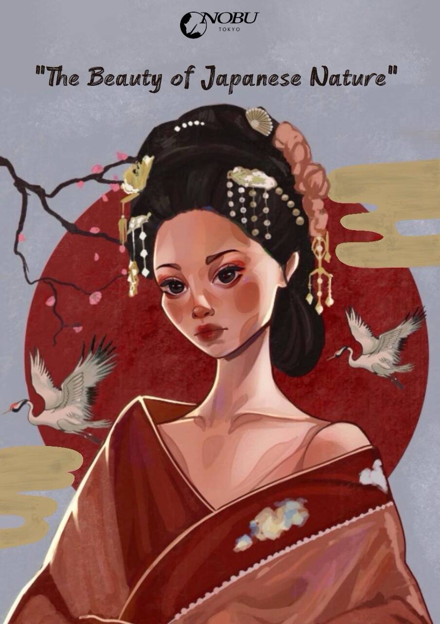 This poster celebrates the beauty of Japanese nature, expressing harmony, calm, and elegance. The character is inspired by traditional Japanese aesthetics, reflecting the deep connection between nature and Japanese culture.