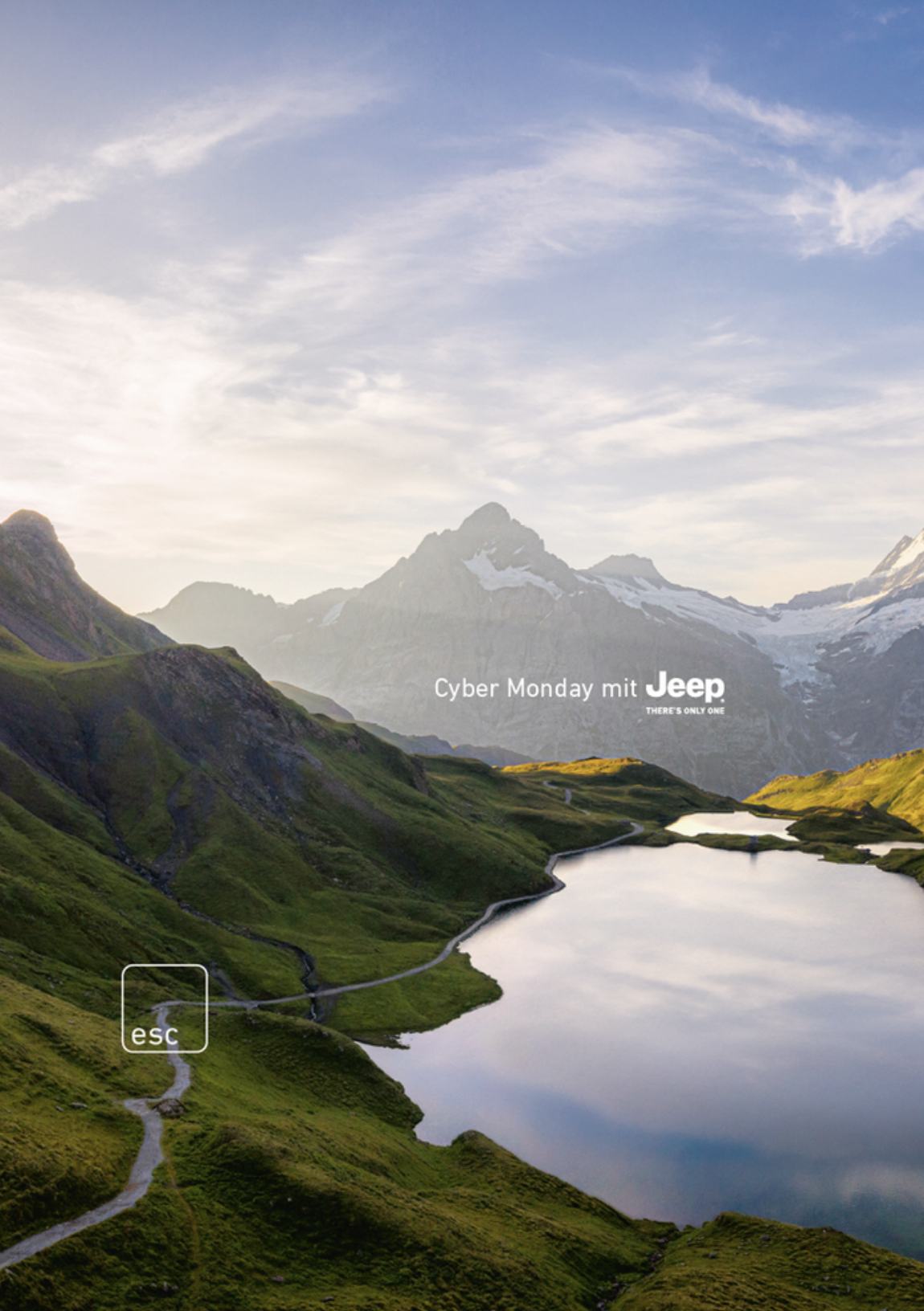 Jeep, in Switzerland, is not running a special offer on Cyber Monday this year. Good. Because after all the stress of Black Friday, Jeep already has everything you need on offer: The freedom on Cyber Monday to press ESC and enjoy what's on our doorstep. So don't get annoyed with your shopping cart; get yourself the freedom to escape.