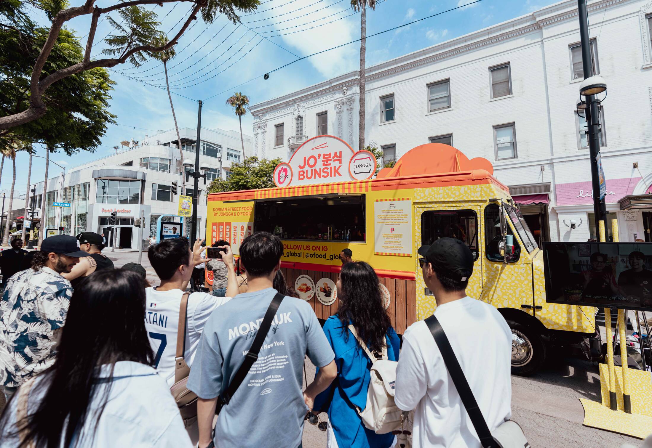 Guests received two free dishes at the food truck and samples of some of Jongga’s and O’Food’s most popular products, merch giveaways and other special surprises. Inspired by traditional Bunsik stores, the JO'Bunsik truck is adorned with bright, colorful branding, with the name combining both brand names.